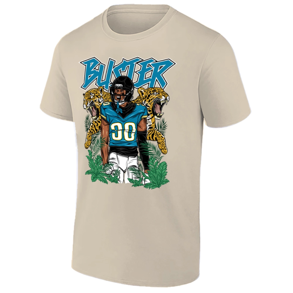 Rep Duval pride in bold style with the Jacksonville Jaguars Buster Shirt! Featuring a clean, high-energy design inspired by the swagger and toughness of the Jags, this tee brings the spirit of Jacksonville football to every game day.