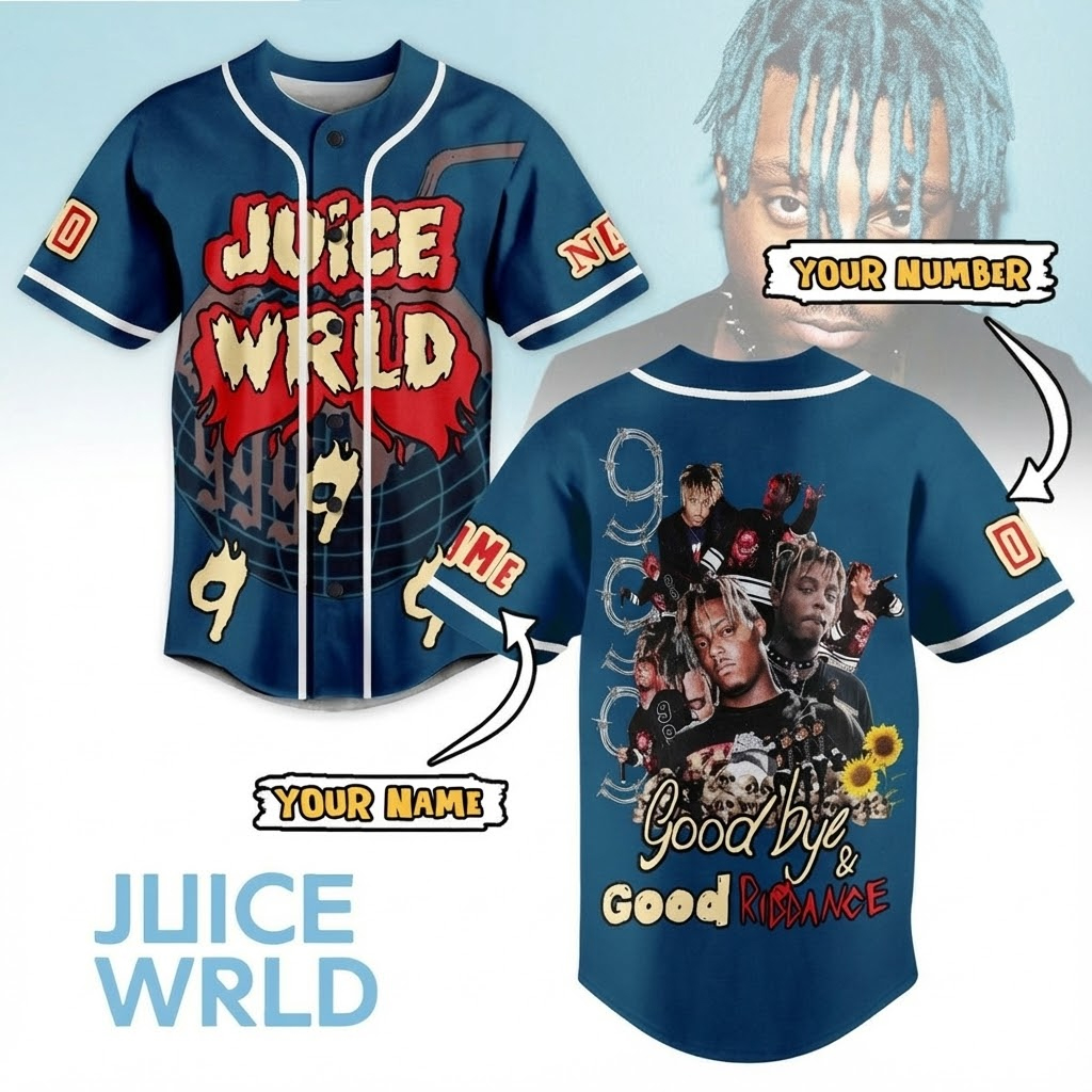 This baseball jersey features iconic imagery and lyrics from Juice WRLD’s Good Bye & Good Riddance, bringing his debut album to life in a fresh and personalized way. With high-quality prints and the option to add your name or favorite number, this jersey is a perfect tribute to Juice WRLD’s legacy and his unique ability to capture the emotions of his generation.