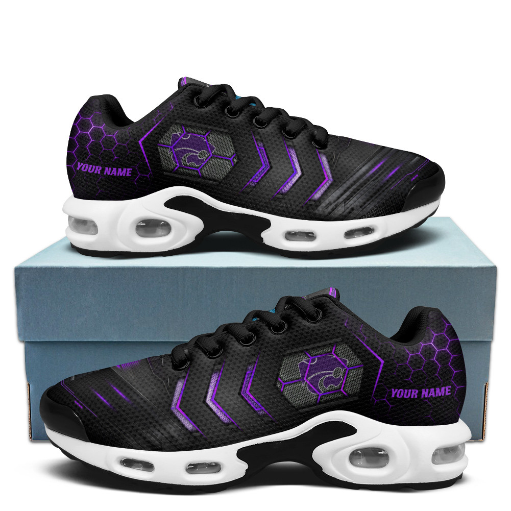 Step up your style with the Kansas State Personalized Name Team Colors Arrow Line Beehive Pattern Air Max Shoes Air Cushion Sneakers and make a bold impression wherever you go.