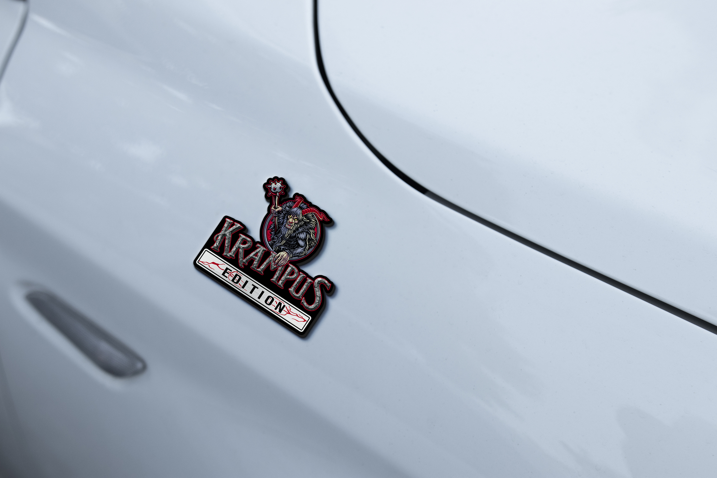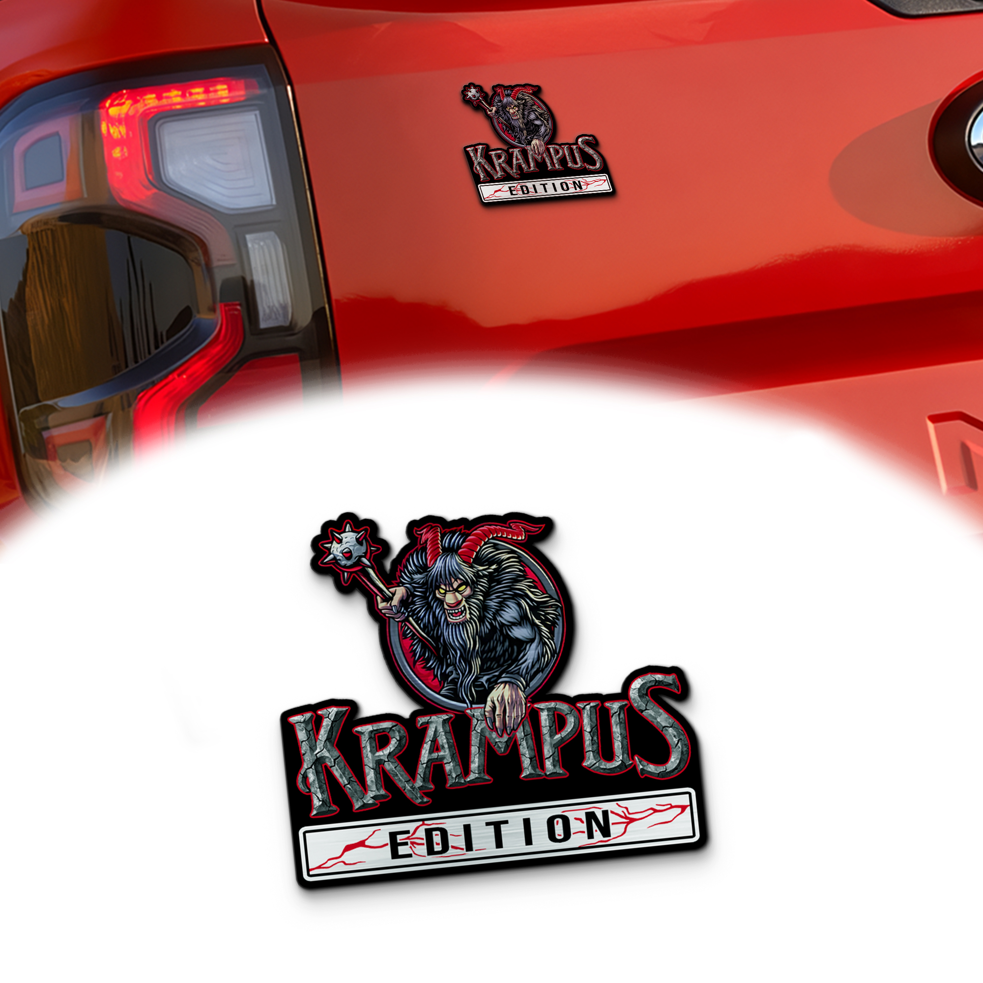 Turn your vehicle into a moving warning. Add the Krampus Edition Car Emblem to your ride and let the road know you don’t follow traditions — you haunt them.