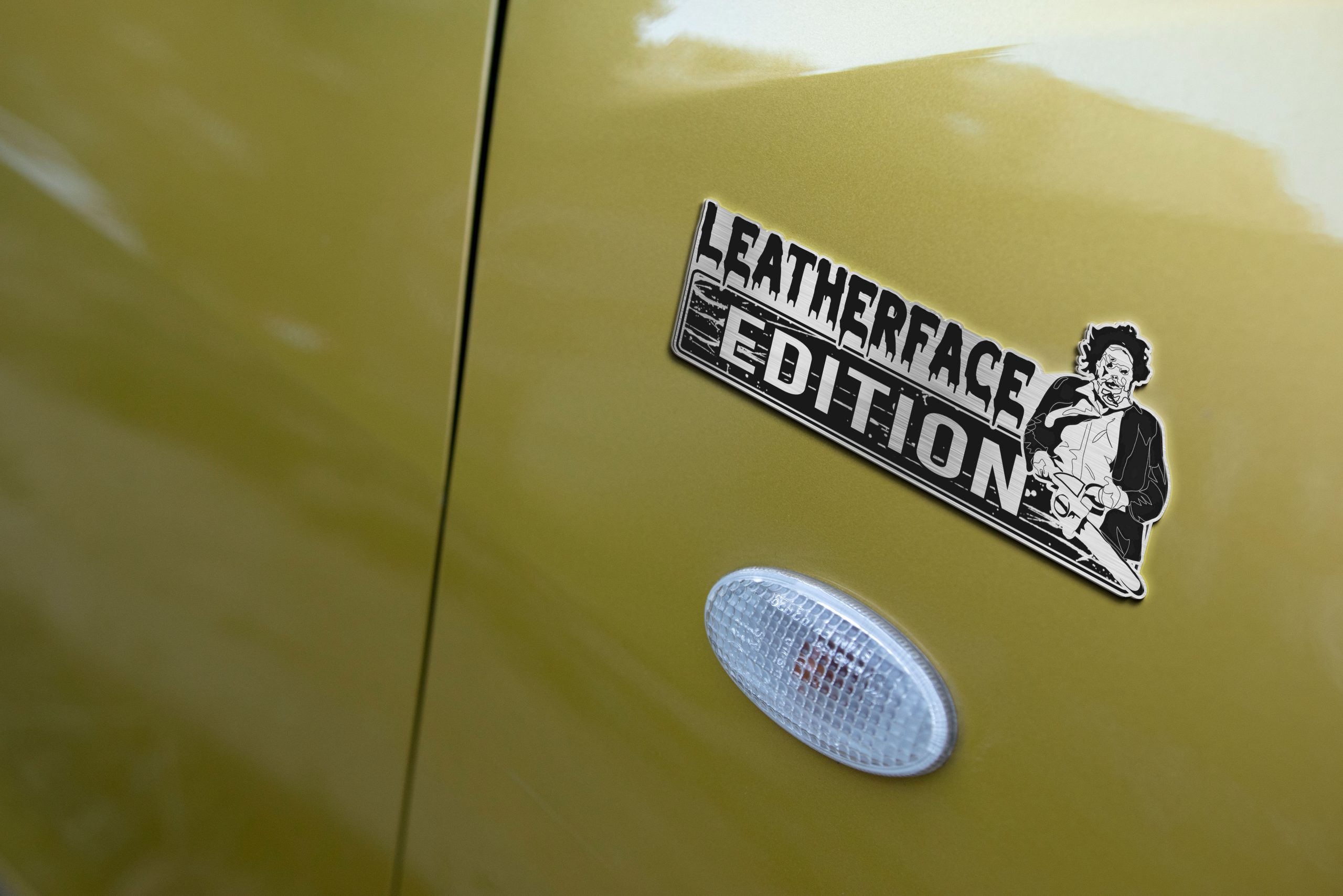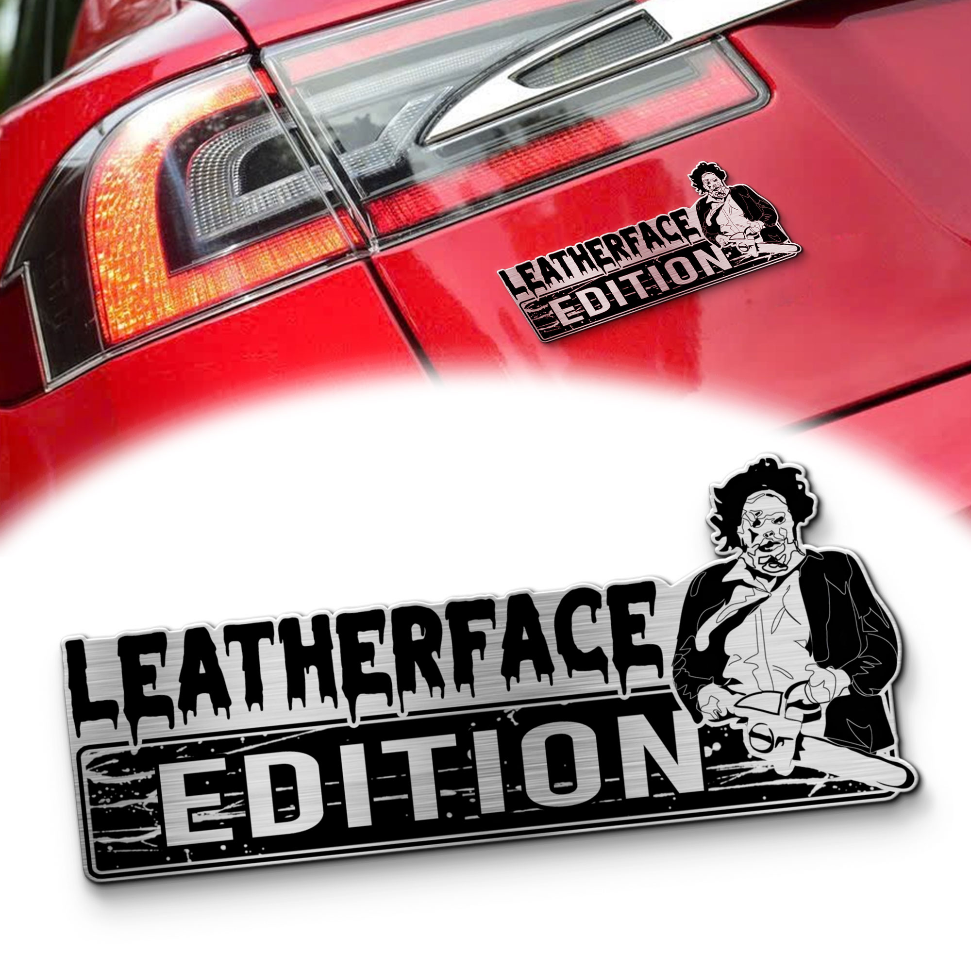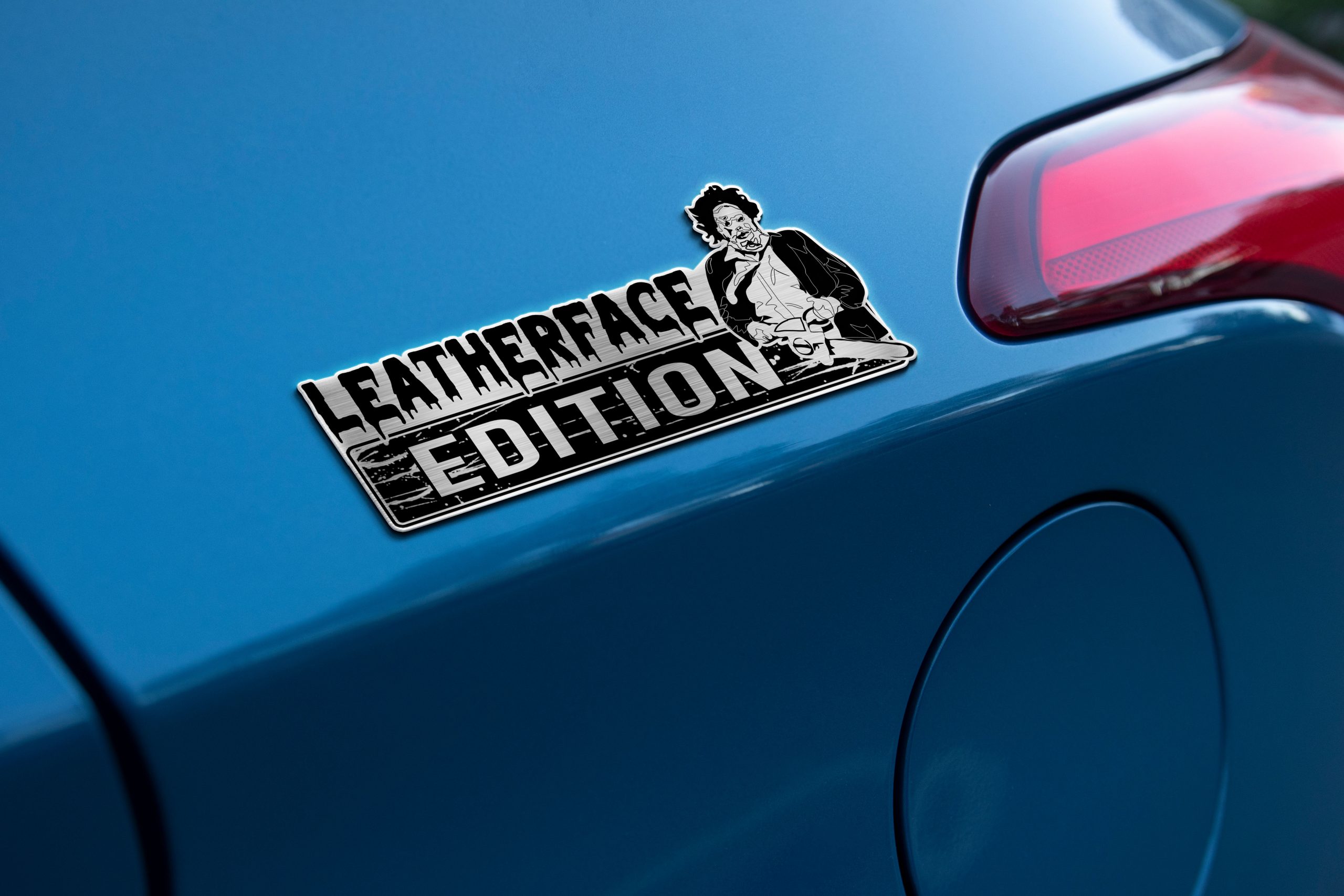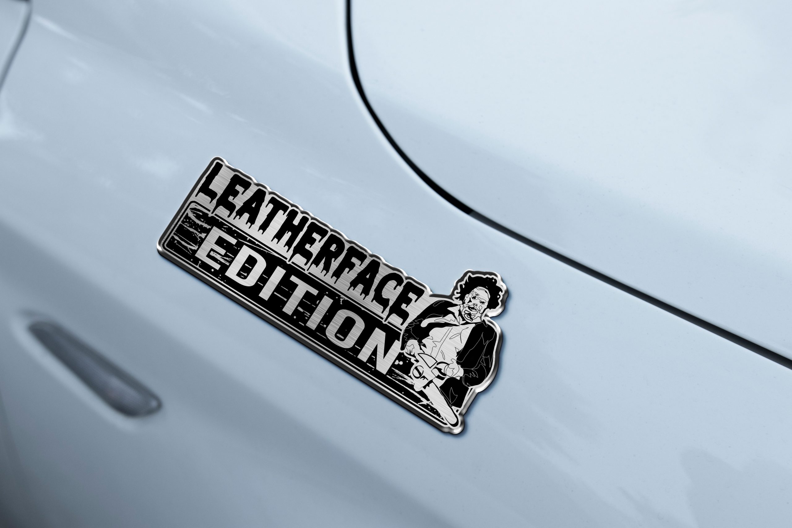 🔪 Leatherface Edition Laser-Engraved Car Name Emblem – Drive With a Chainsaw-Wielding Legacy!