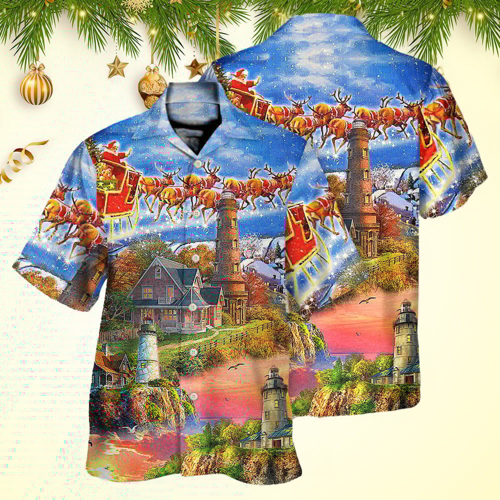 Lighthouse Christmas Santa Christmas Hawaiian Shirt Holiday Gifts For Men’s