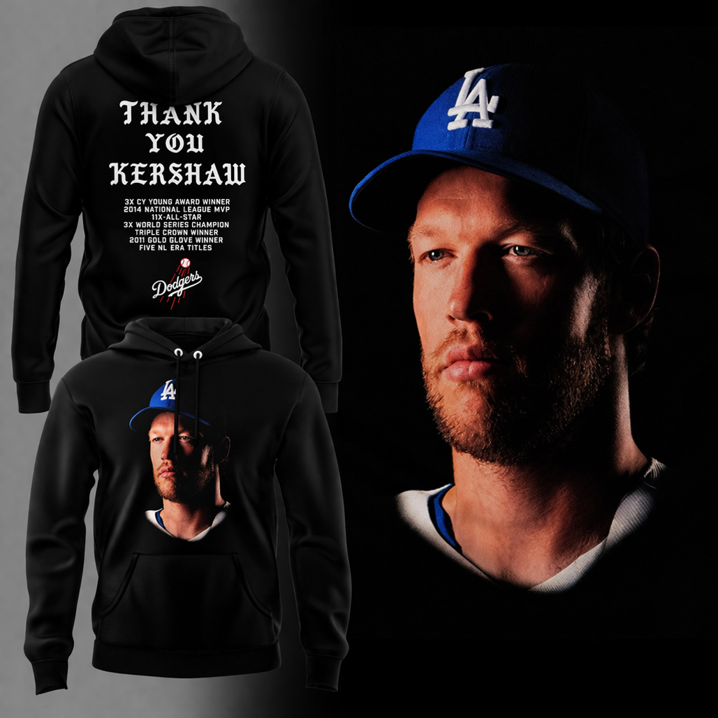 Featuring a bold “Thank You Clayton Kershaw” inspired graphic with Los Angeles Dodgers elements, the design blends tribute and team pride with timeless fan style. Perfect for game days, loyal supporters, and baseball fans, this shirt delivers comfort and heartfelt energy.
