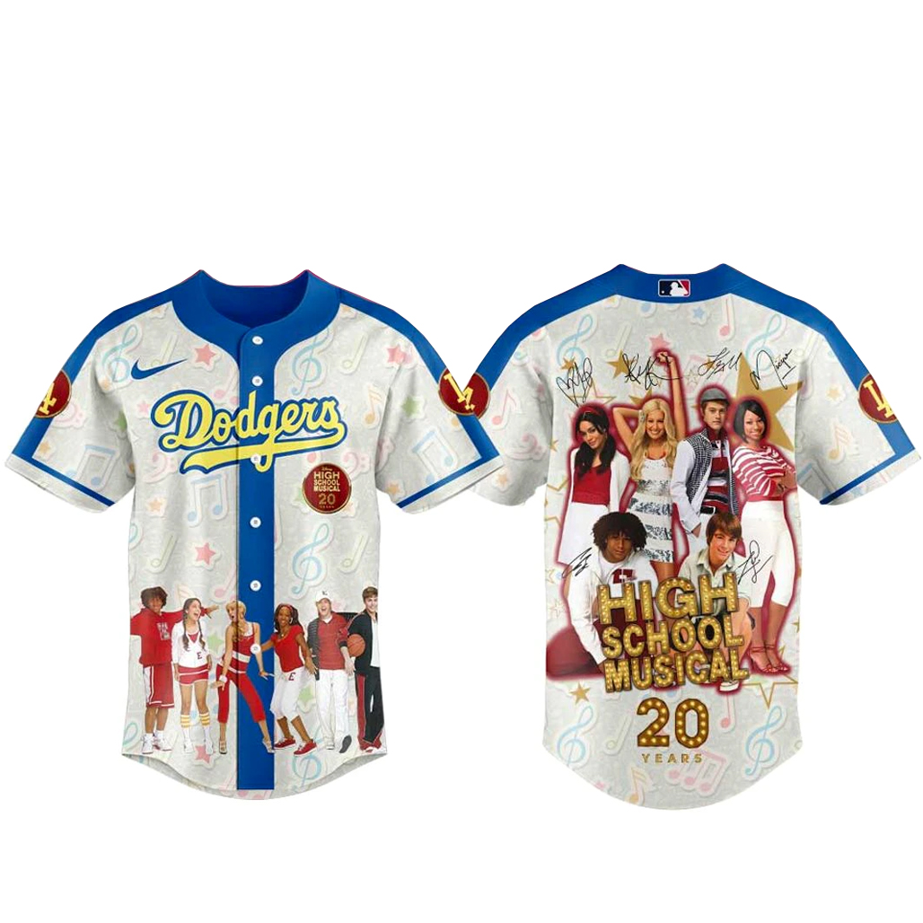 Celebrate nostalgia, music, and team pride with the Los Angeles Dodgers x 20th Anniversary High School Musical Baseball Jersey. Blending Dodgers heritage with the iconic High School Musical vibe, this design delivers a fun, energetic, and throwback-inspired look.