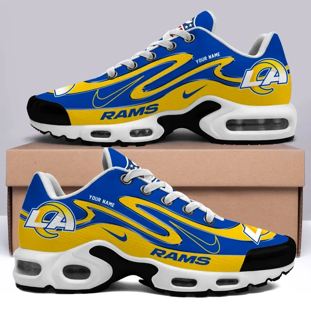 The Los Angeles Rams Personalized Name Team Mix Colors V2 Shoes Air Cushion Sneakers are a must-have for fans who love unique and stylish footwear. Inspired by iconic themes and bold design elements, these sneakers feature eye-catching graphics combined with the signature Air Max silhouette.