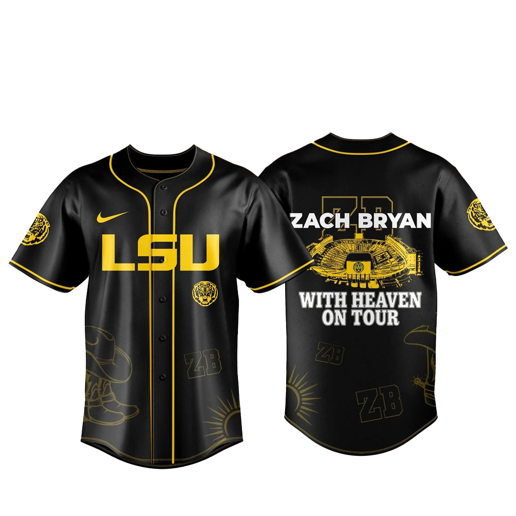 The LSU Tigers x Zach Bryan With Heaven On Tour Baseball Jersey captures the powerful spirit of college football and the soulful atmosphere of one of country music’s most unforgettable tours. Inspired by roaring stadium nights and the emotional energy of Zach Bryan’s performances, this jersey blends sports pride with music culture in a bold and symbolic way. It’s designed for fans who live for game-day excitement, heartfelt lyrics, and the shared moments that make every season and every tour unforgettable.