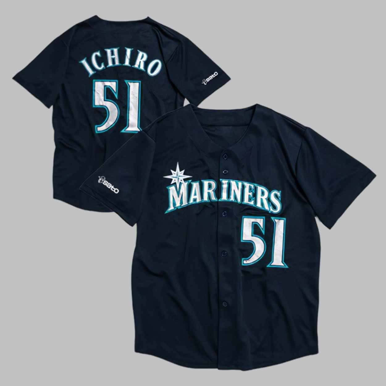 Featuring a bold graphic inspired by Ichiro’s legendary No. 51 jersey, this shirt brings back the speed, skill, and style that defined an era at T-Mobile Park.