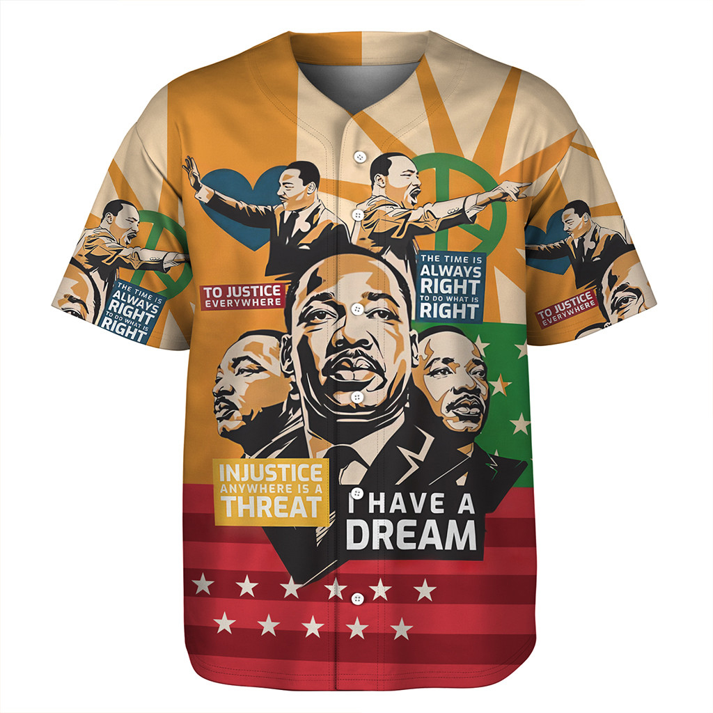 Designed as high-quality printed apparel, this baseball jersey features a striking graphic celebrating Martin Luther King Jr. Crisp, durable printing ensures that every detail of his historic legacy stands out for years to come.