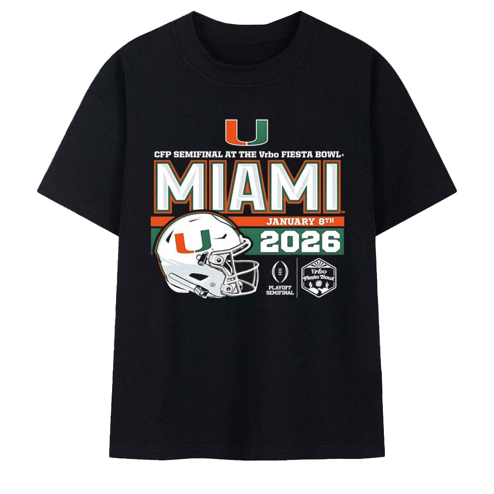 Celebrate a defining postseason triumph with the CFP Semifinal at The Vrbo Fiesta Bowl Champions Helmet 2026 T-Shirt. Designed to honor the Miami Hurricanes and their championship-level performance on one of the biggest stages in college football, this tee captures the power, pride, and momentum of a historic CFP semifinal victory.
