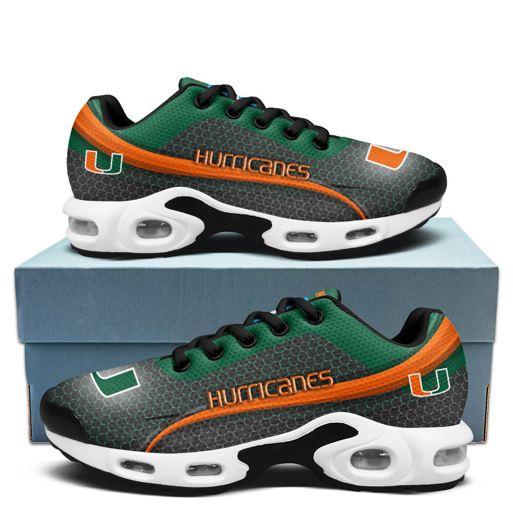 The Miami Hurricanes Personalized Name Team Colors Wave Line Beehive Pattern Shoes Air Cushion Sneakers are a must-have for fans who love unique and stylish footwear. Inspired by iconic themes and bold design elements, these sneakers feature eye-catching graphics combined with the signature Air Max silhouette.