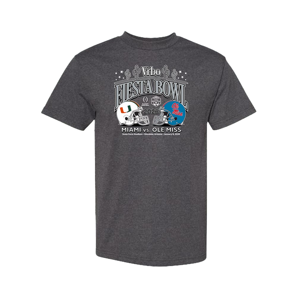 Celebrate a marquee bowl matchup with the 2026 Vrbo Fiesta Bowl T-Shirt. Featuring the showdown between the Miami Hurricanes and the Ole Miss Rebels, this tee captures the excitement, tradition, and national spotlight of one of college football’s biggest stages at the Fiesta Bowl.