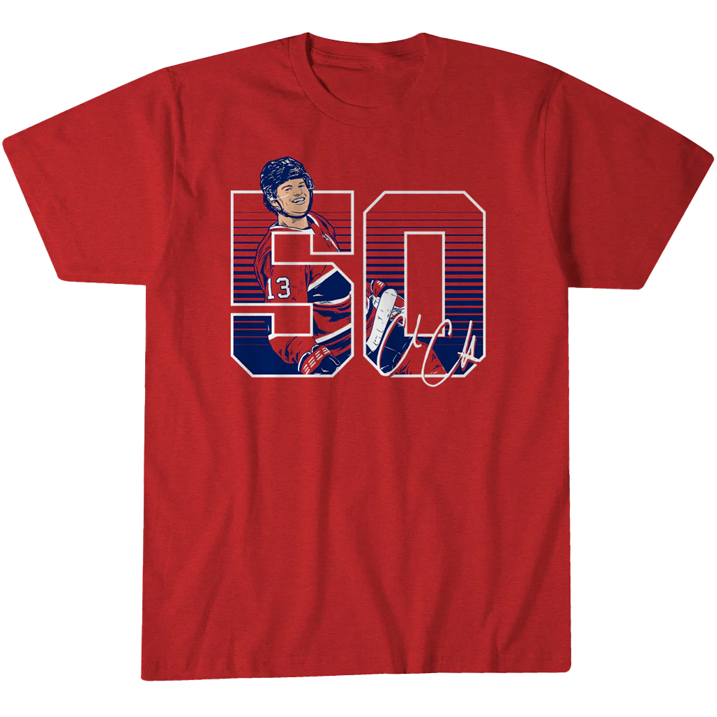 Featuring a bold “50 Goals” graphic combined with Montreal Canadiens elements, the design blends iconic team pride with standout player recognition. Perfect for game days, Habs fans, and supporters of elite offensive talent, this shirt delivers both comfort and high-energy style.