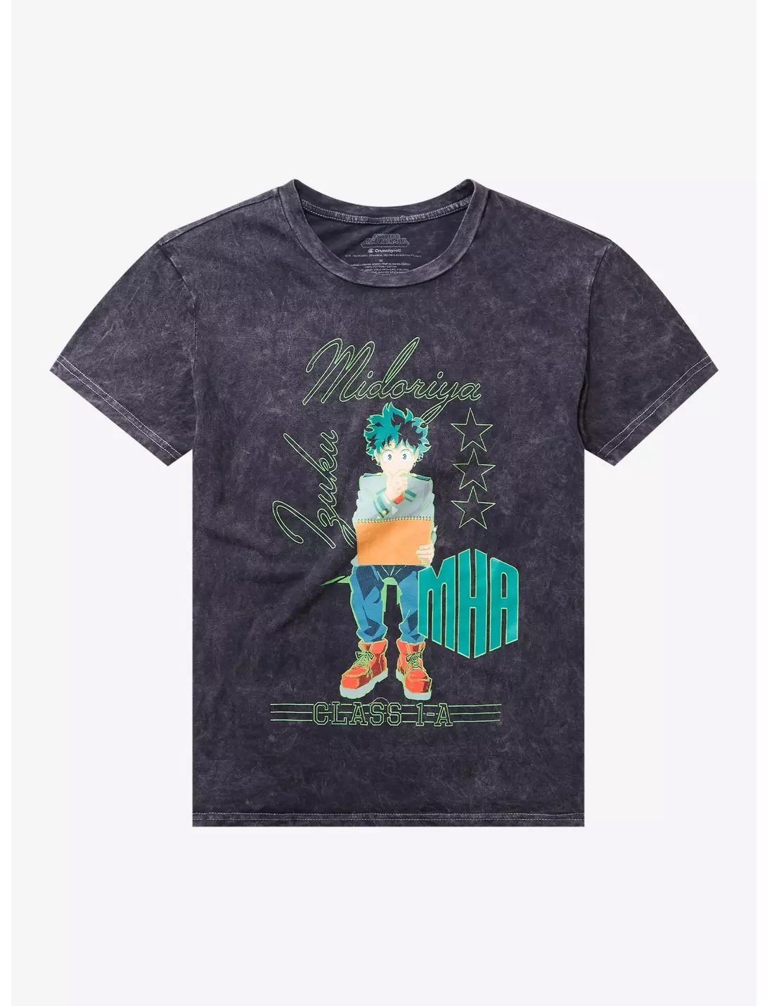 Graphic: Vintage wash “Deku Studying” design featuring classic My Hero Academia artwork.
