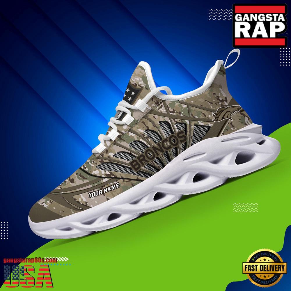 Step up your footwear game with the National Football League Custom Name Denver Broncos Camo Veteran Day Air Max Shoes Air Cushion Sneakers and stand out wherever you go.