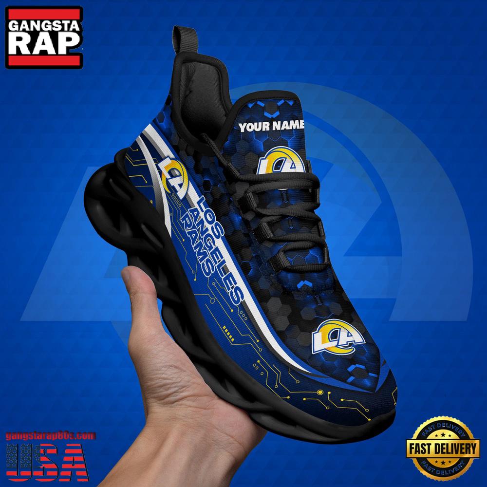 Step up your footwear game with the National Football League Custom Name Los Angeles Rams Team Logo Air Max Shoes Air Cushion Sneakers and stand out wherever you go.