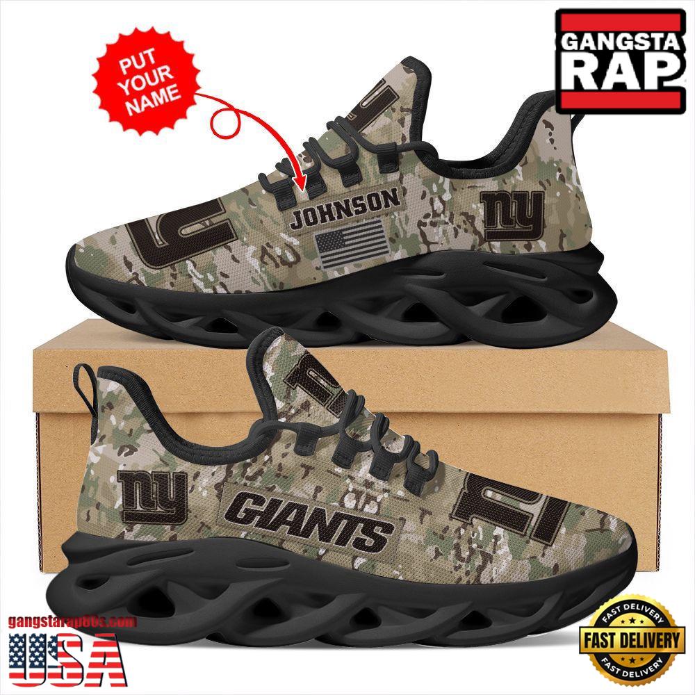 Step up your footwear game with the National Football League Custom Name New York Giants US Army Military Veteran Camouflage Air Max Shoes Air Cushion Sneakers and stand out wherever you go.