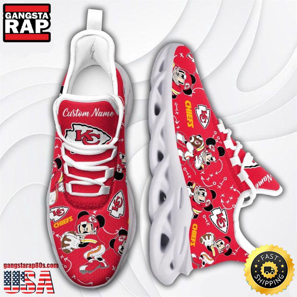 Step up your footwear game with the National Football League Kansas City Chiefs Mickey Mouse Custom Name Air Max Shoes Air Cushion Sneakers and stand out wherever you go.