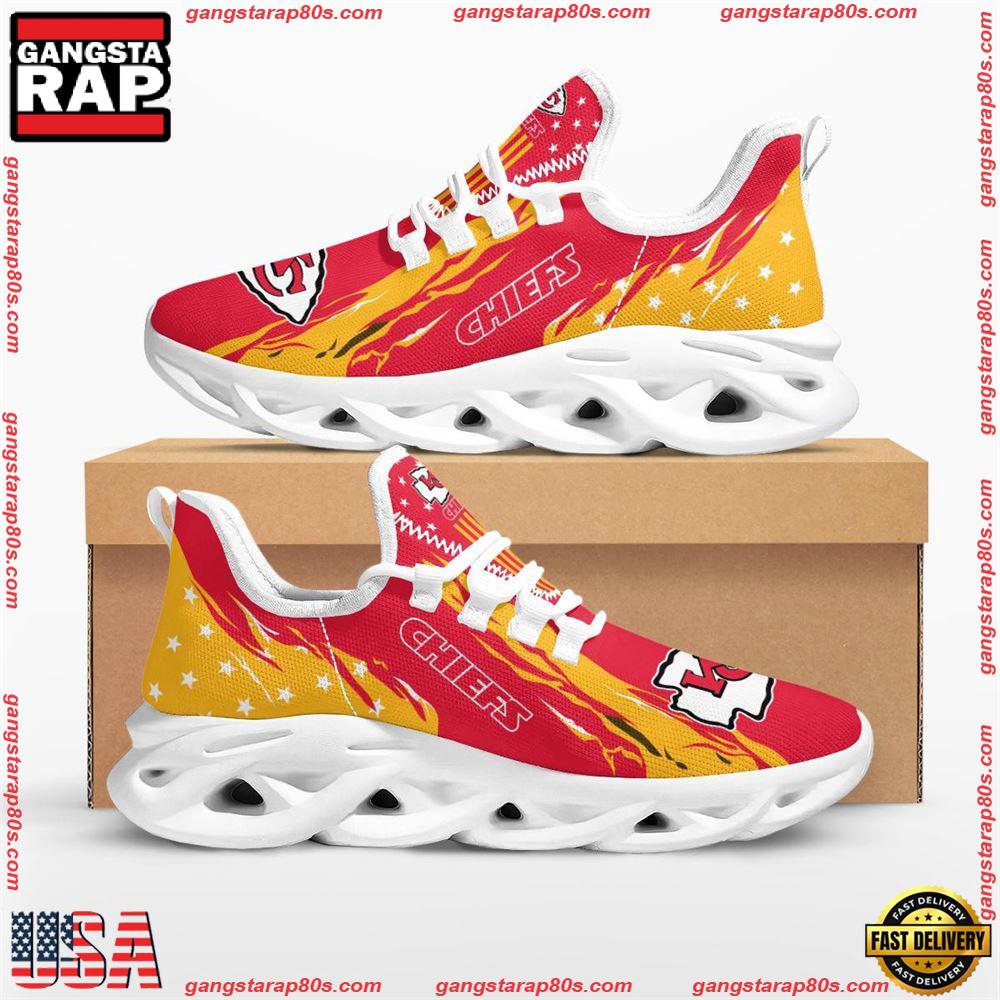 Step up your footwear game with the National Football League Kansas City Chiefs Stars and Stripes Air Max Shoes Air Cushion Sneakers Running Sneakers and stand out wherever you go.
