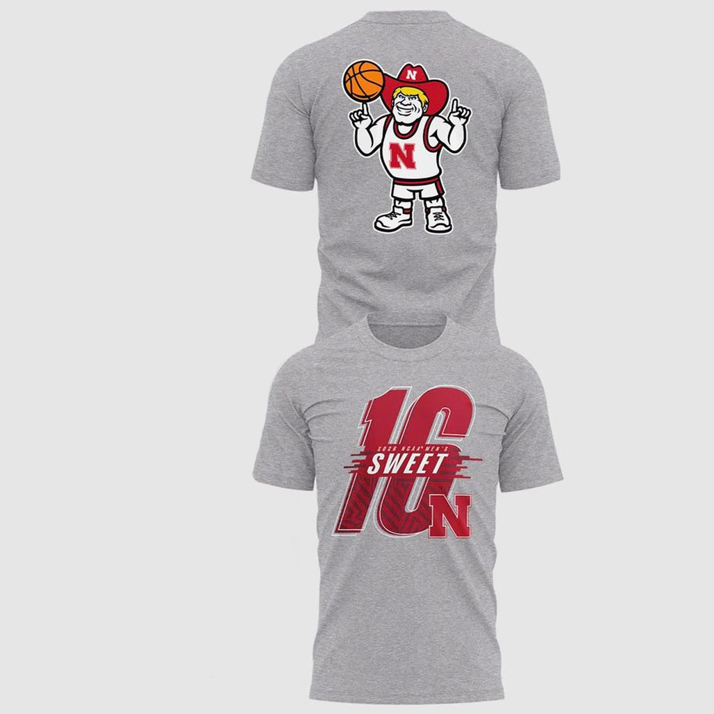 Featuring a bold Sweet 16-inspired graphic with Nebraska Huskers elements, the design blends postseason intensity with standout fan style. Perfect for game days, loyal supporters, and college basketball fans, this shirt delivers comfort and competitive energy.
