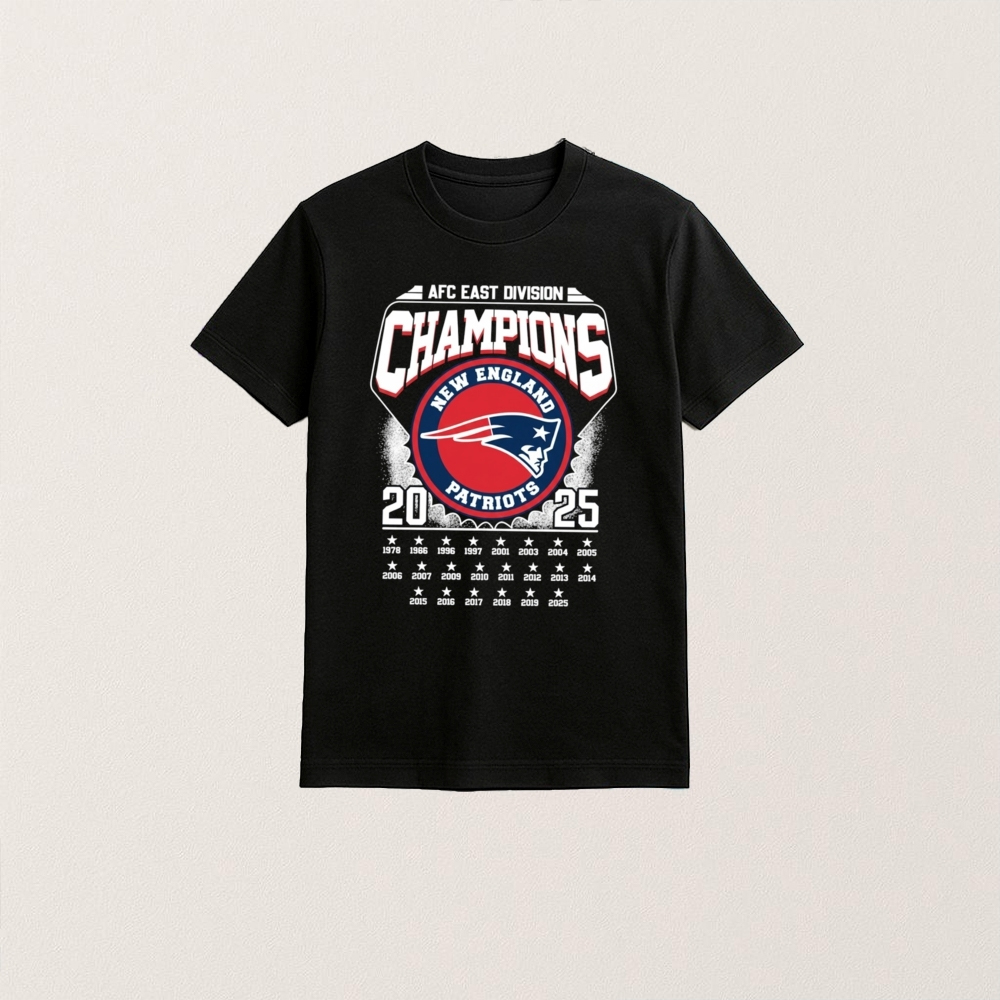 A must-have for any New England Patriots fan, this shirt commemorates the team’s 2025 AFC East championship win. With vintage graphics, it’s a tribute to the Patriots’ legacy and their continued dominance in the division.