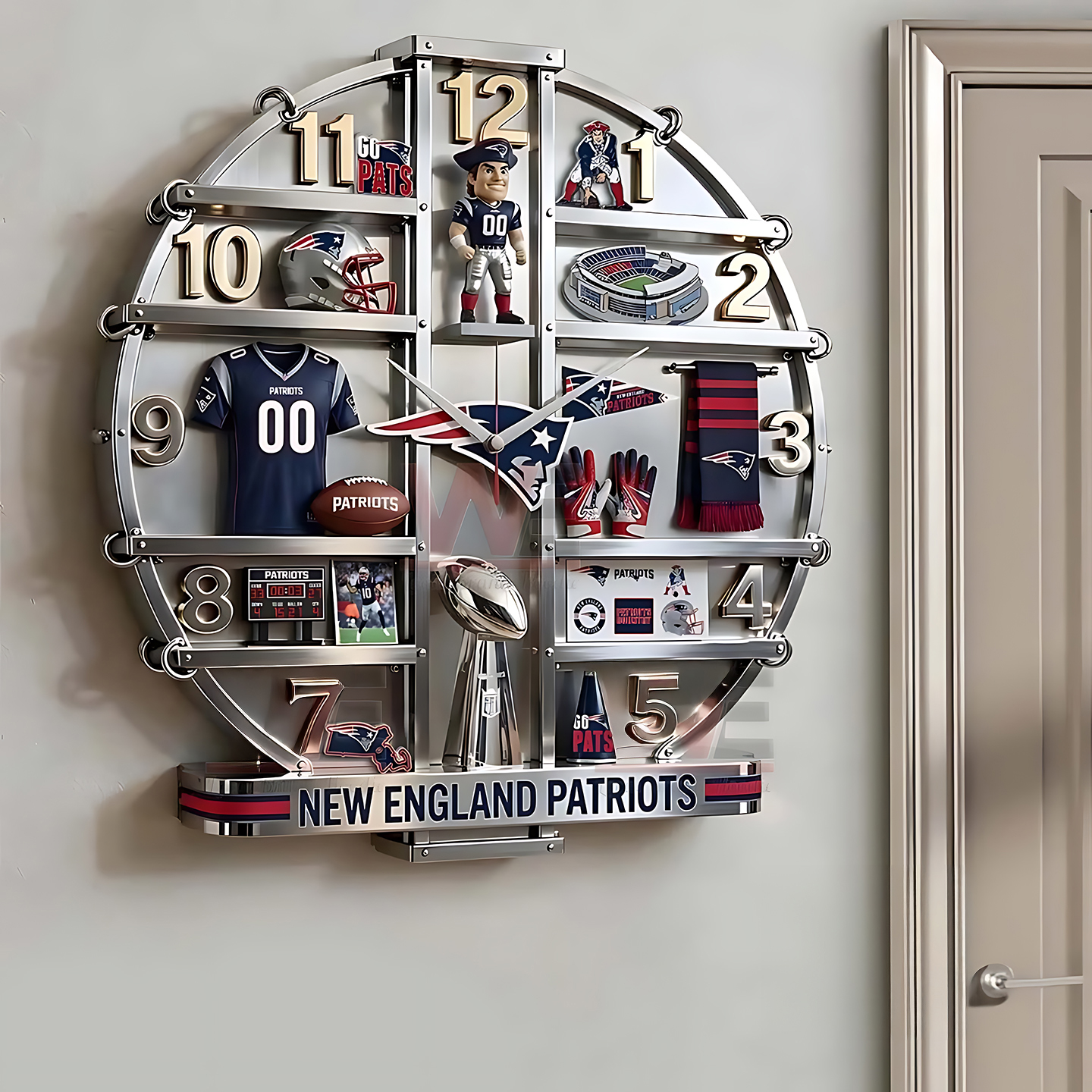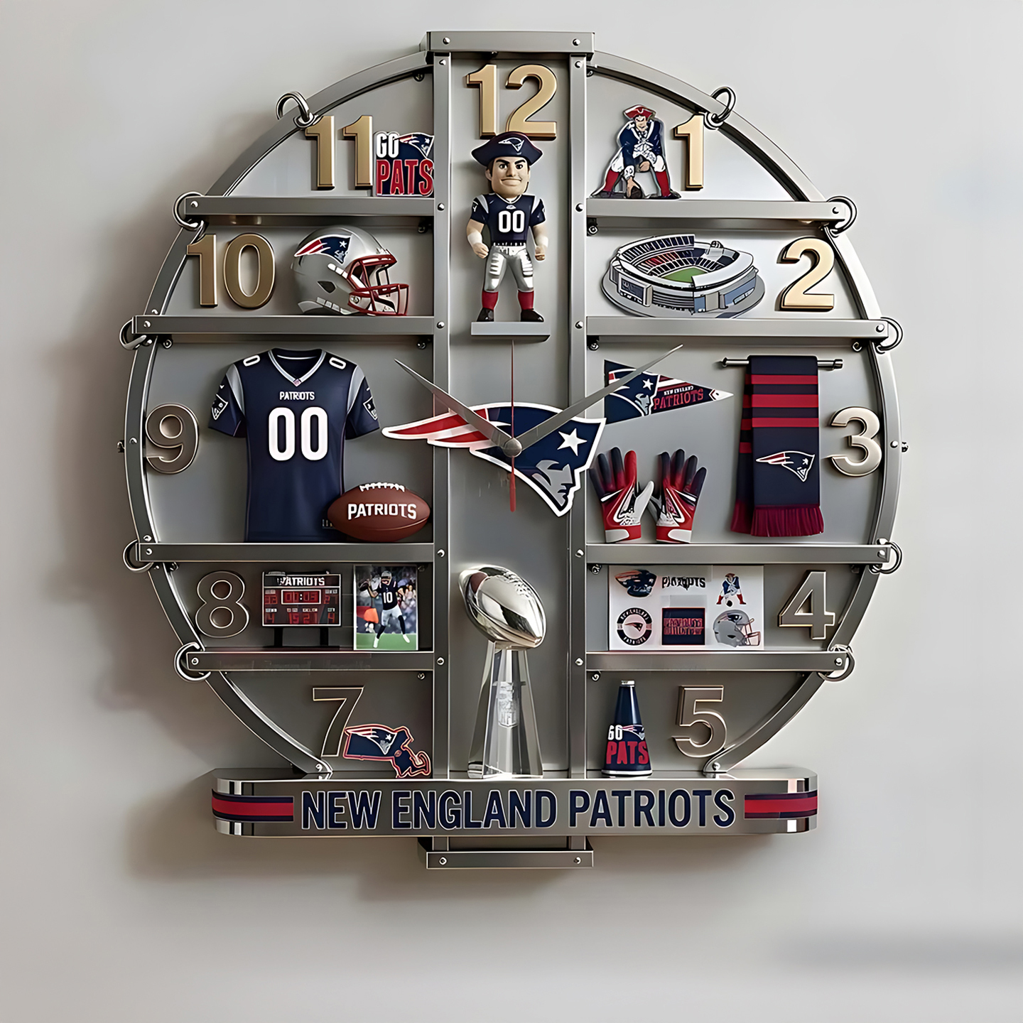 Show your team spirit with the New England Patriots Home Decorative 3D Wall Clock. This sleek and functional clock adds a stylish touch to living rooms, bedrooms, offices, or game rooms, bringing bold Patriots pride to any space.