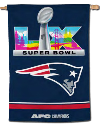 Celebrate the victory. Honor the journey. Fly your pride with this Patriots Super Bowl LX AFC Champions All Over Print Flag – Version 2.