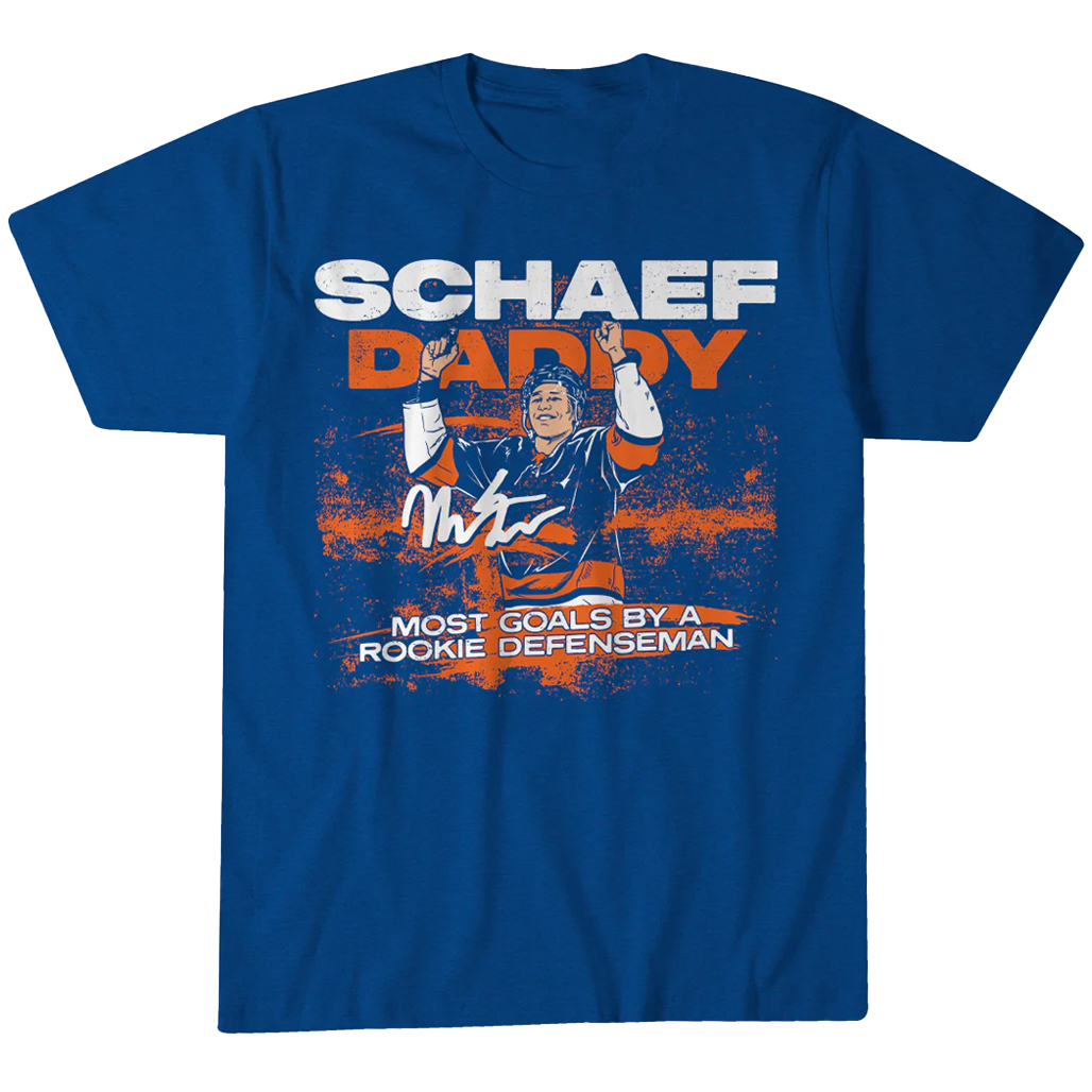 New York Islanders Matthew Schaefer Rookie Defenseman Goal Record T-Shirt
