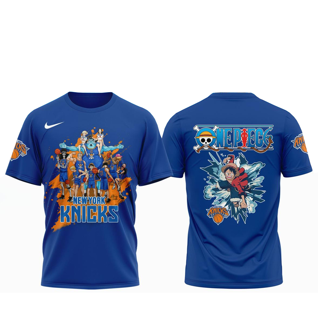This design combines New York Knicks fandom with the adventurous energy of One Piece, creating a standout look for fans who love both basketball and anime culture.