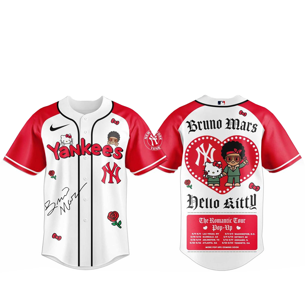 New York Yankees Bruno Mars x Hello Kitty 2026 The Romantic Tour Baseball Jersey