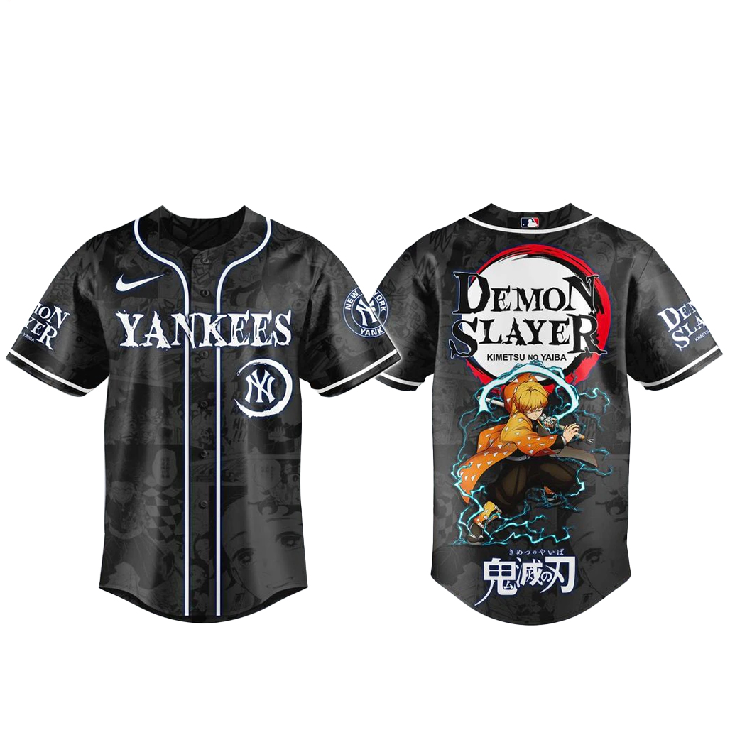 Unleash electrifying energy with the New York Yankees x Zenitsu Agatsuma Demon Slayer Night Baseball Jersey.