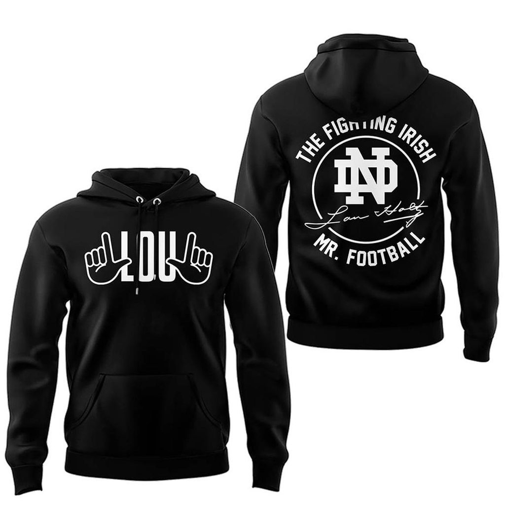 Featuring a respectful memorial-inspired graphic blended with Fighting Irish pride, the artwork reflects gratitude, remembrance, and the enduring influence of one of college football’s most iconic figures. Perfect for game days, commemorative moments, or everyday wear, this shirt lets fans carry forward the legacy of a true Notre Dame legend.