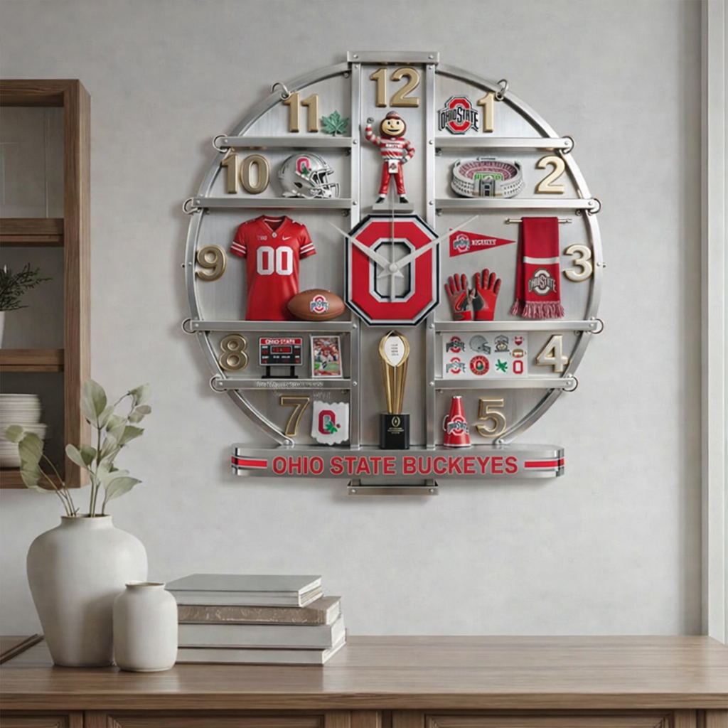 Bring Ohio State pride into any room with the Ohio State Buckeyes Home Decorative 3D Wall Clock. This stylish and functional clock is the perfect addition to living rooms, bedrooms, offices, or game rooms, adding a bold touch of team spirit wherever it’s displayed.