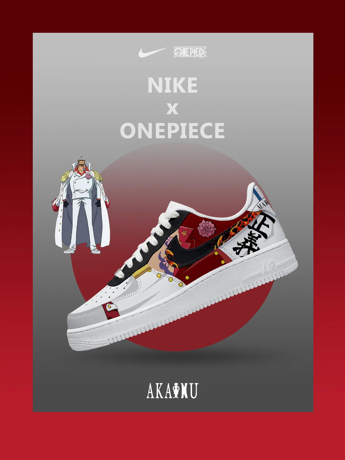 Step into the world of pirates with the One Piece Akainu Air Force 1 Shoes Sneakers and show your anime passion wherever you go.