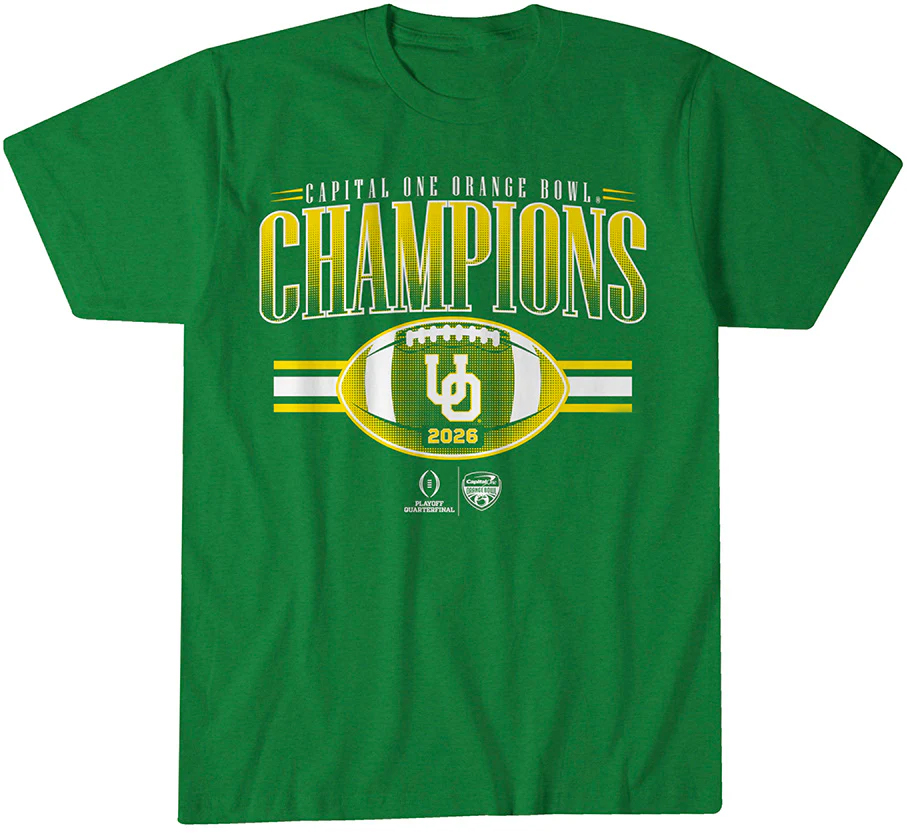 Celebrate Oregon’s epic triumph with the Oregon Football CFP Orange Bowl Champions T-shirt! This exclusive tee commemorates the Ducks’ thrilling victory in the College Football Playoff (CFP) Orange Bowl, marking a historic moment in their football legacy. Featuring bold, championship graphics, this shirt is the perfect way to honor Oregon’s hard-fought victory and celebrate their spot at the top. Whether you’re a die-hard fan or simply proud of their incredible achievement, this shirt is a must-have for any Ducks supporter.