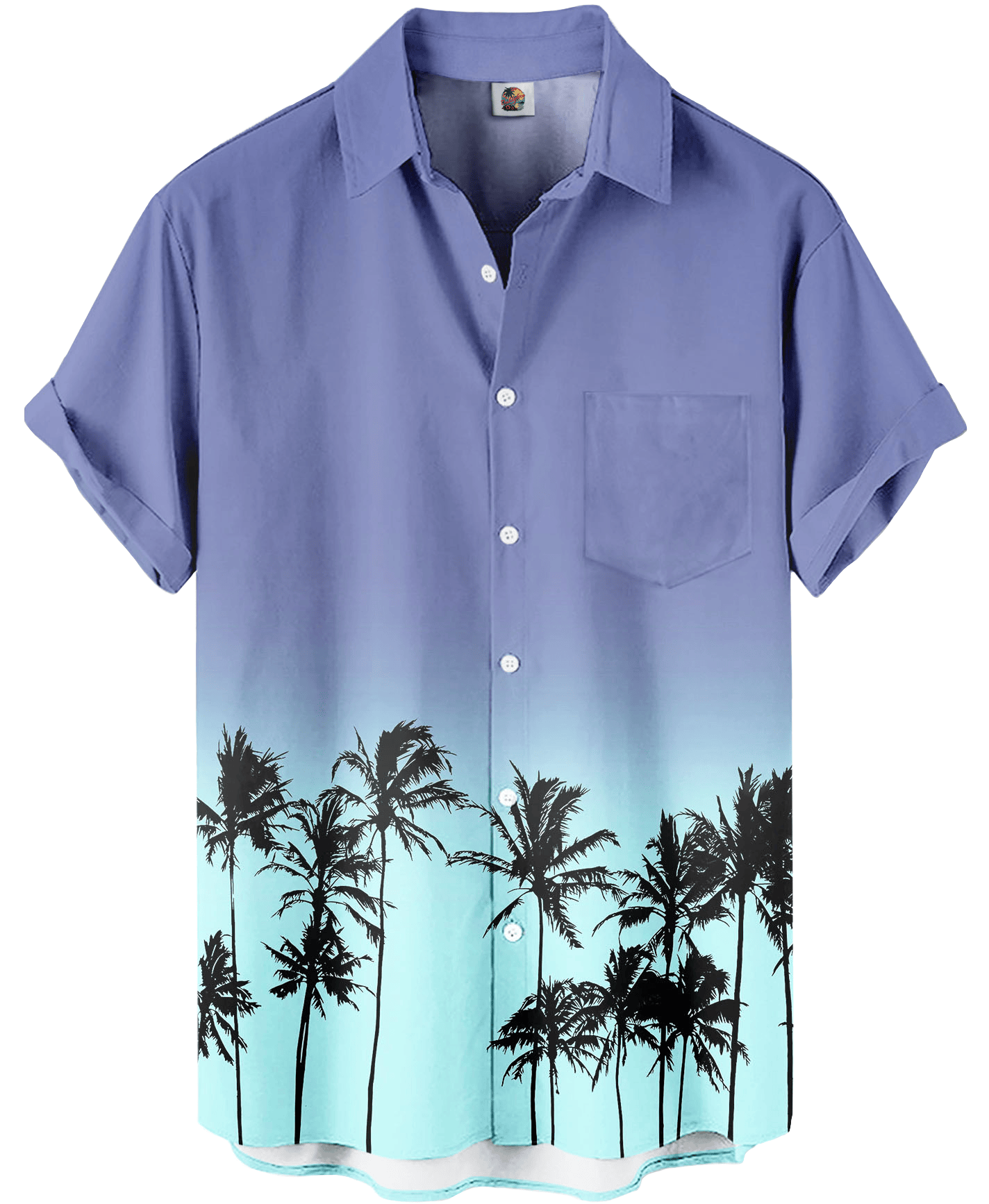 Unisex Hawaiian Aloha Shirt – Palm Tree Print, Blue Ombre, Short Sleeve