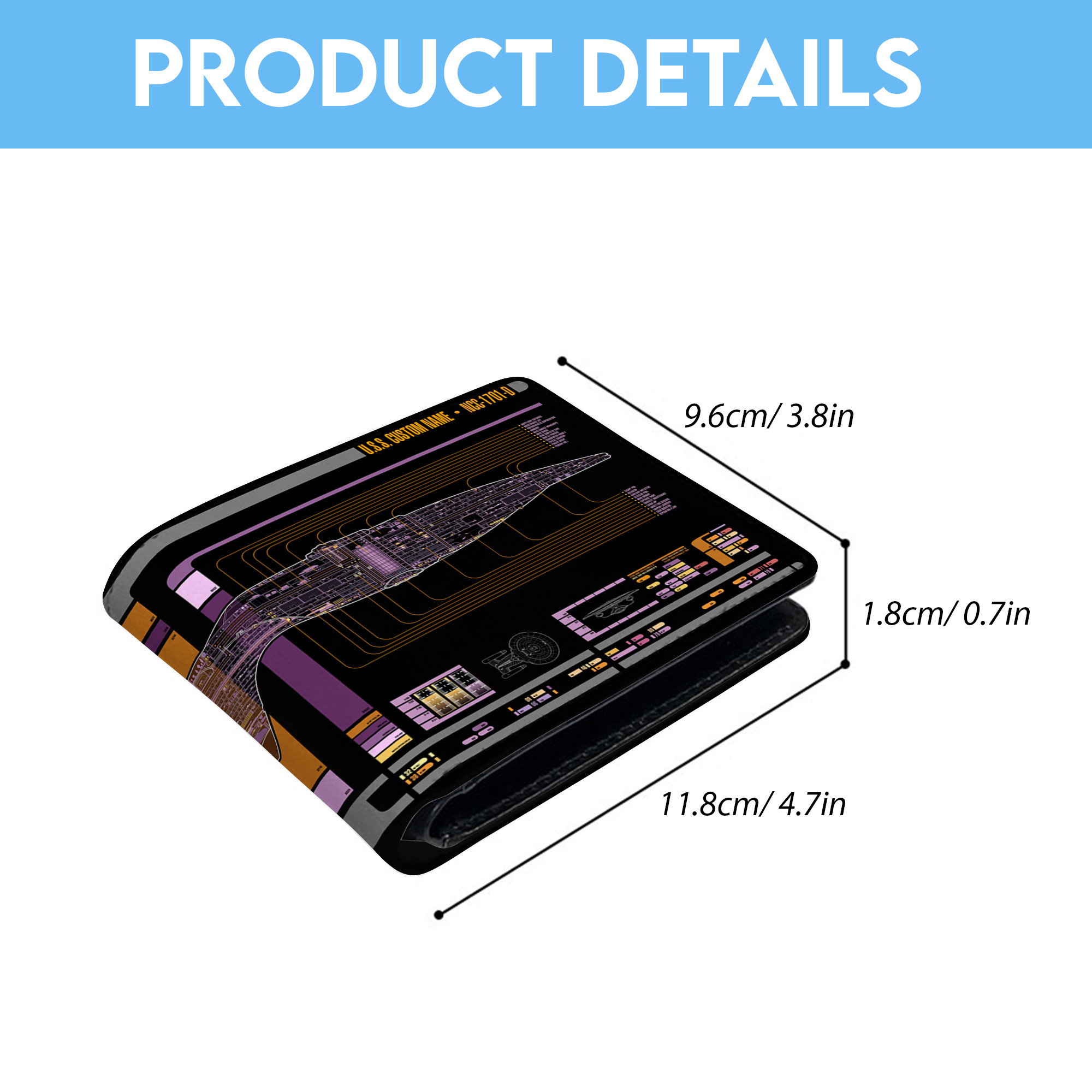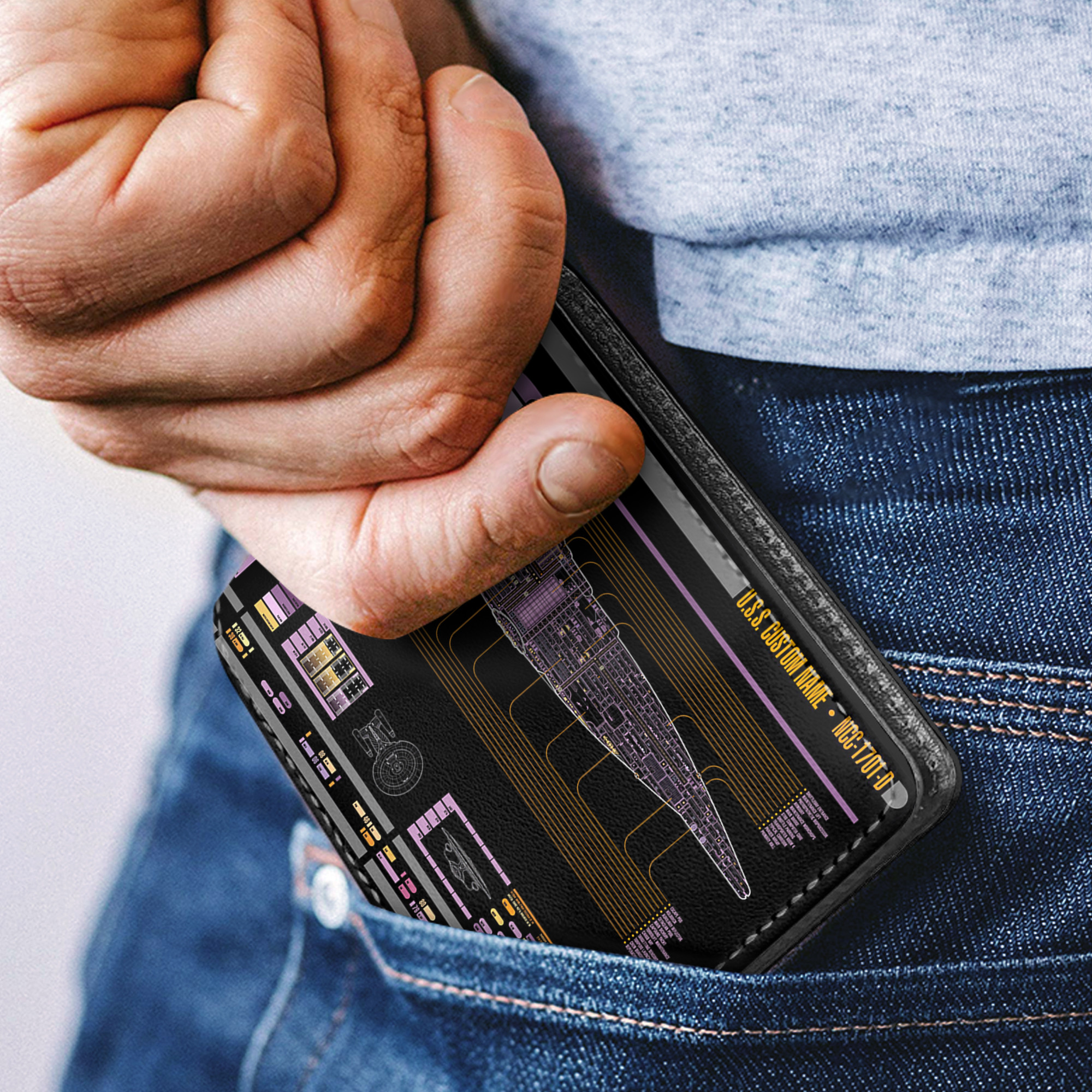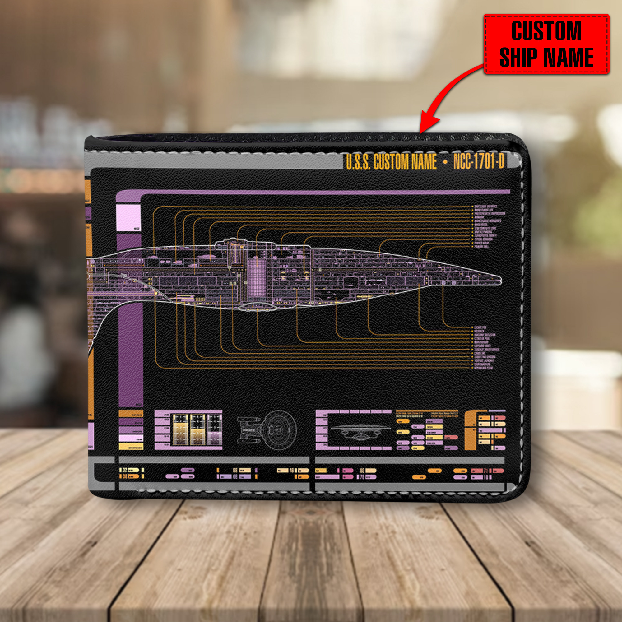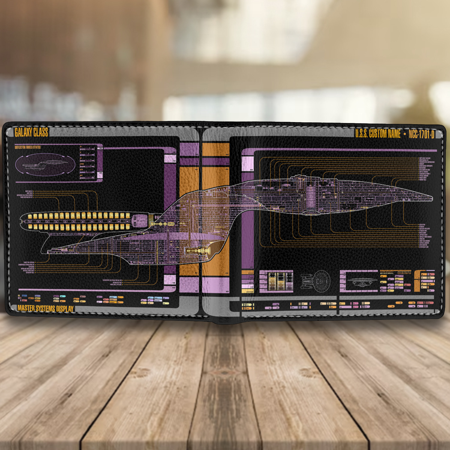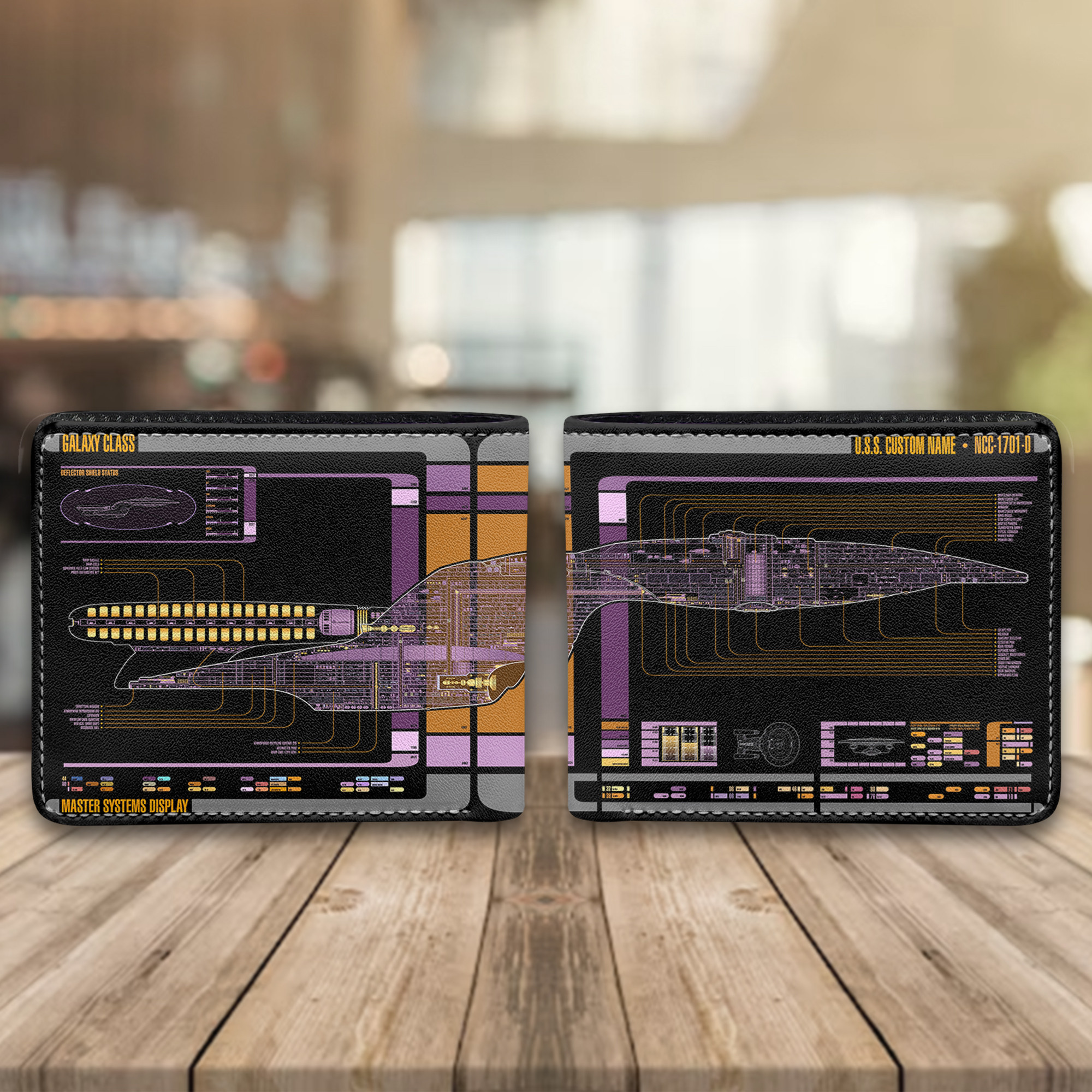 Personalized Galaxy Class NCC-1701-D LCARS Leather Wallet