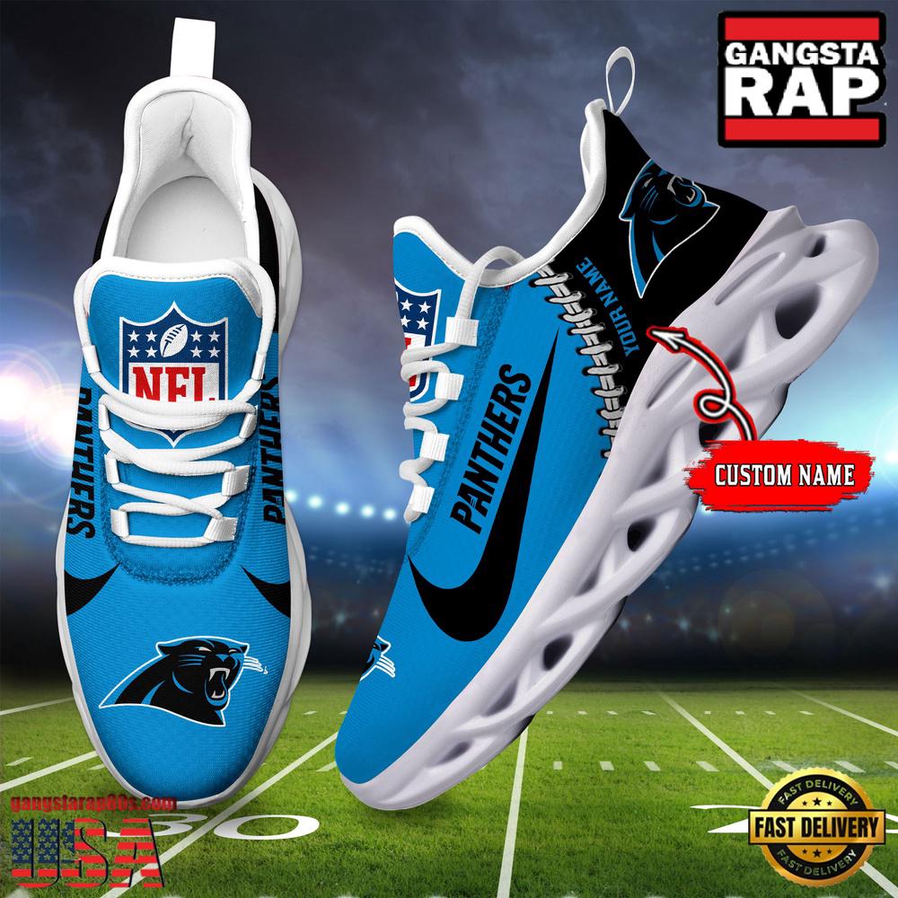Step up your footwear game with the Personalized National Football League Carolina Panthers Name Air Max Shoes Air Cushion Sneakers and stand out wherever you go.
