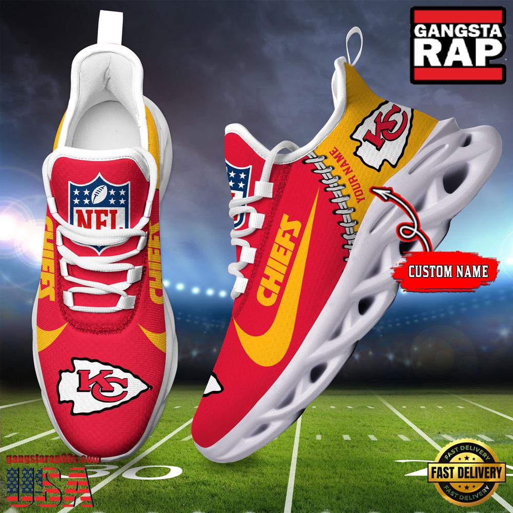 Step up your footwear game with the Personalized National Football League Kansas City Chiefs Name Air Max Shoes Air Cushion Sneakers and stand out wherever you go.
