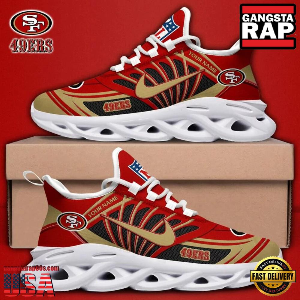 Step up your footwear game with the Personalized National Football League San Francisco 49ers Team Logo Air Max Shoes Air Cushion Sneakers and stand out wherever you go.
