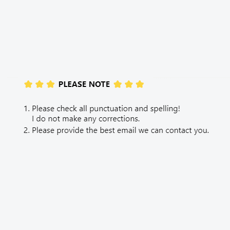 1. Please check all punctuation and spelling! I do not make any corrections.