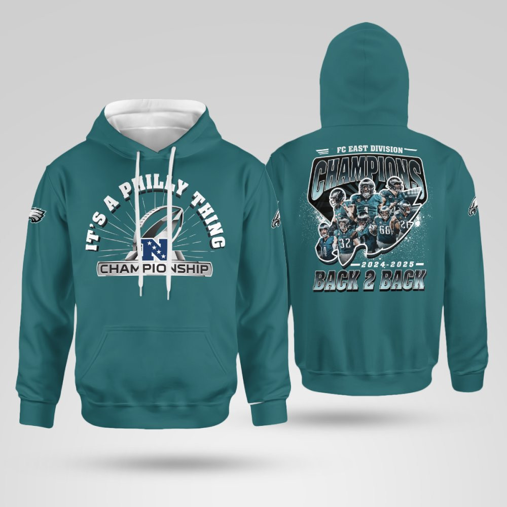Graphic: High-quality printed graphic featuring the Philadelphia Eagles and their 2024-2025 NFC East Division Champions title, with a “Back 2 Back” message.