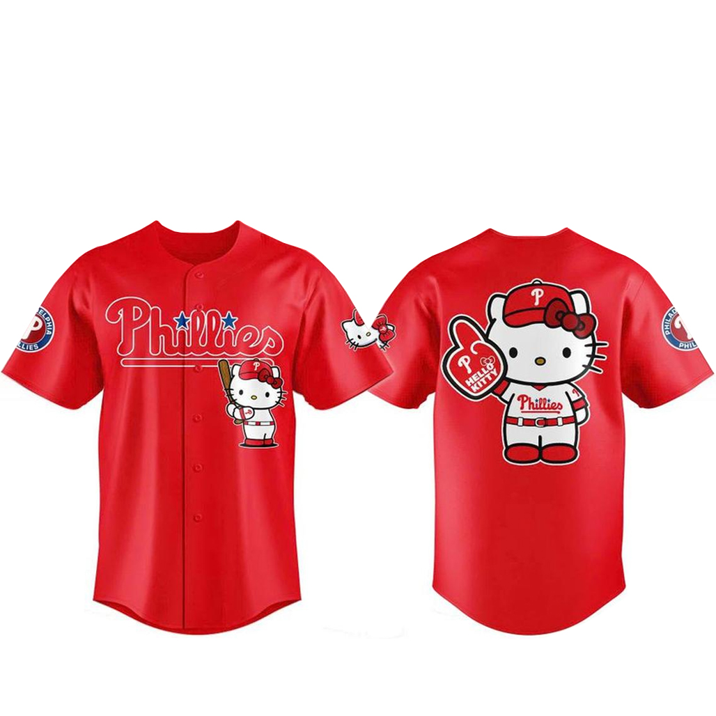 Stand out on game day with the Philadelphia Phillies 2026 Hello Kitty Night Red Baseball Jersey.