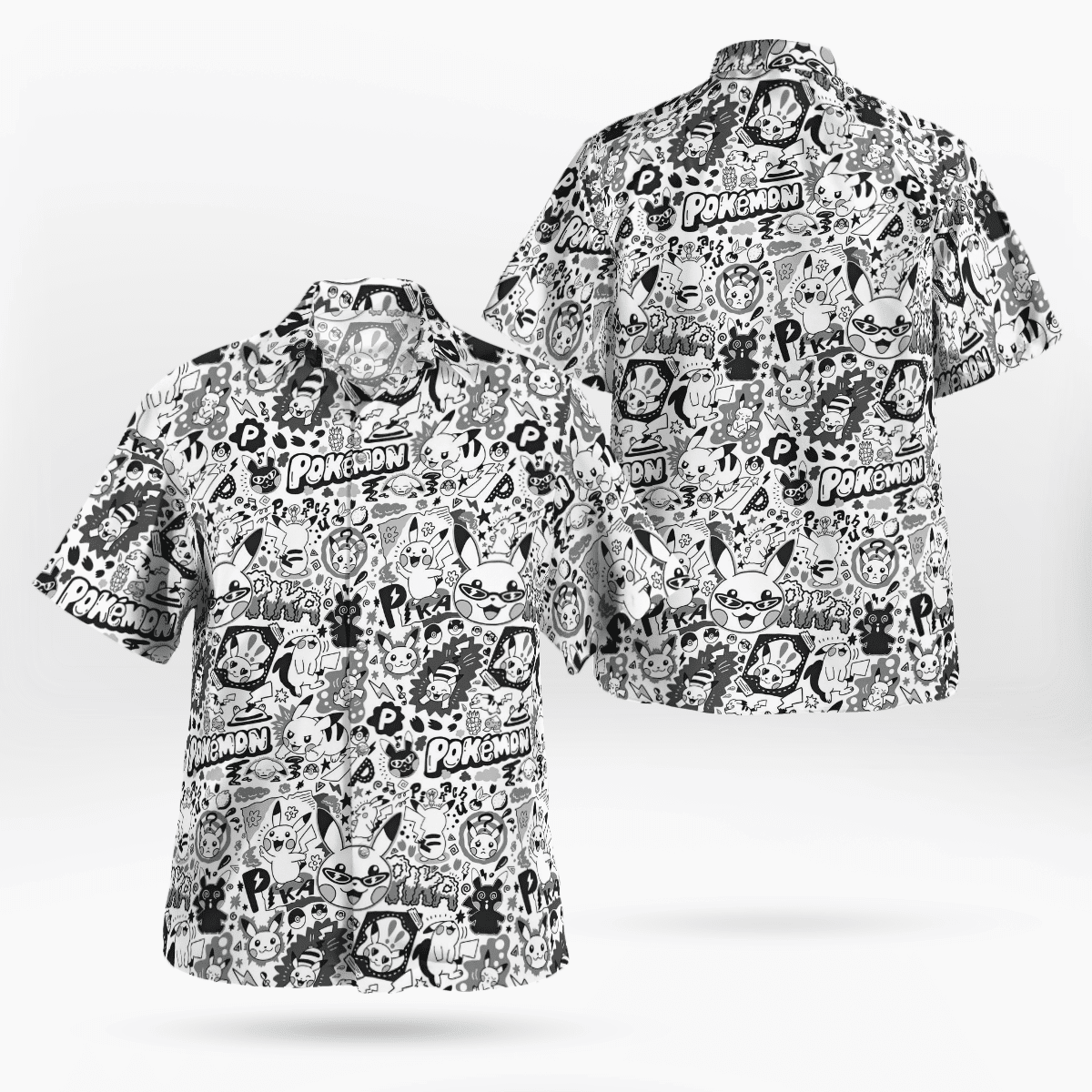 Pikachu Pokémon Black & White Hawaiian Shirt