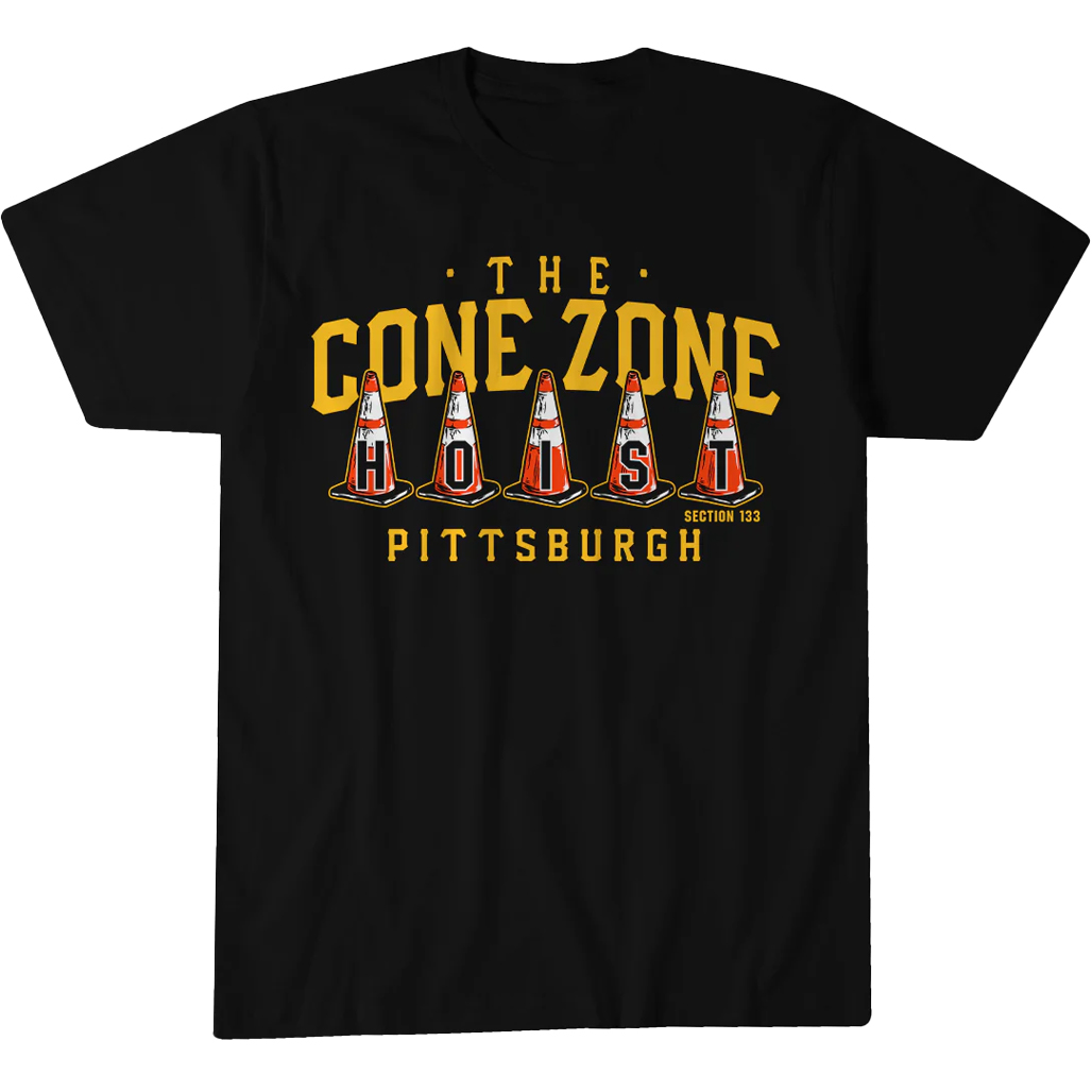 Featuring a bold “The Cone Zone” graphic paired with Pittsburgh baseball elements, the design blends quirky vibes with classic fan pride. Perfect for game days, casual outings, and fans who enjoy standout and fun designs, this shirt delivers comfort and personality.