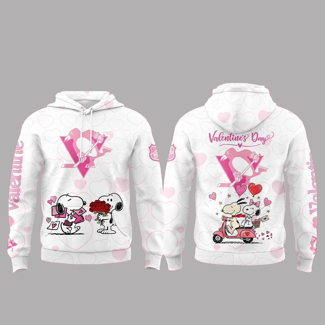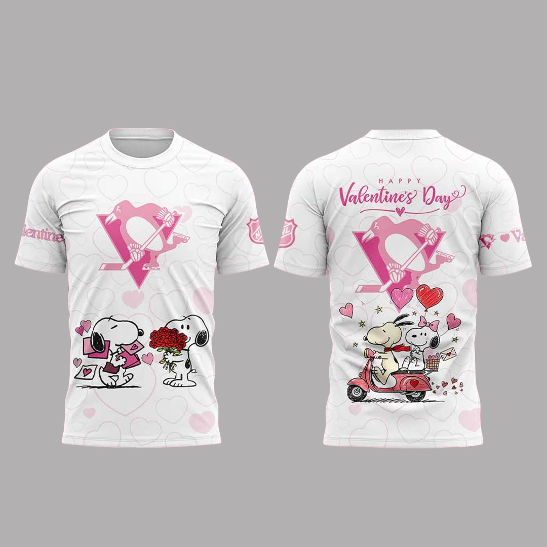 Graphic: High-impact front print combining Pittsburgh Penguins elements with Peanuts Happy Valentine’s Day 2026 artwork