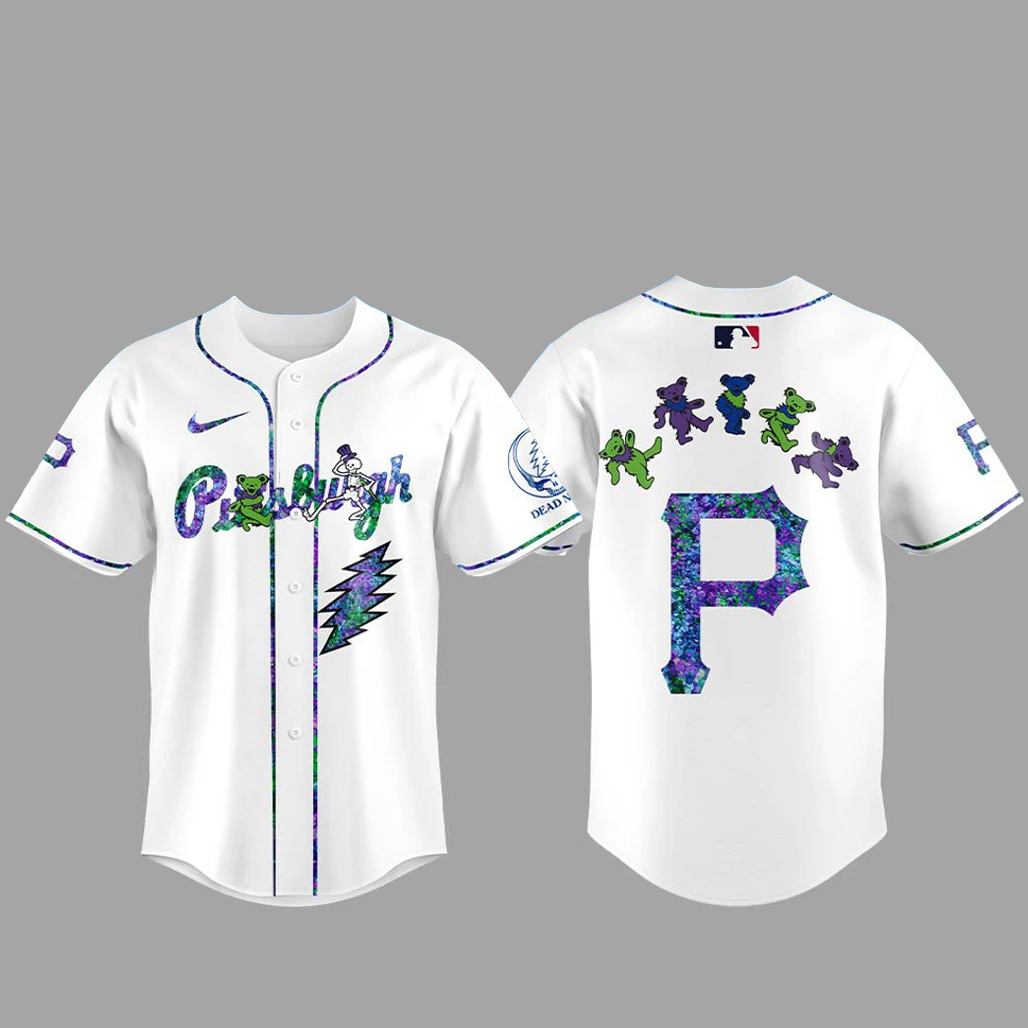 Bring legendary vibes to the ballpark with the Pittsburgh Pirates Grateful Dead Night 2026 White Baseball Jersey. Blending Pirates pride with the iconic spirit of Grateful Dead, this jersey delivers a bold fusion of music culture and baseball style.