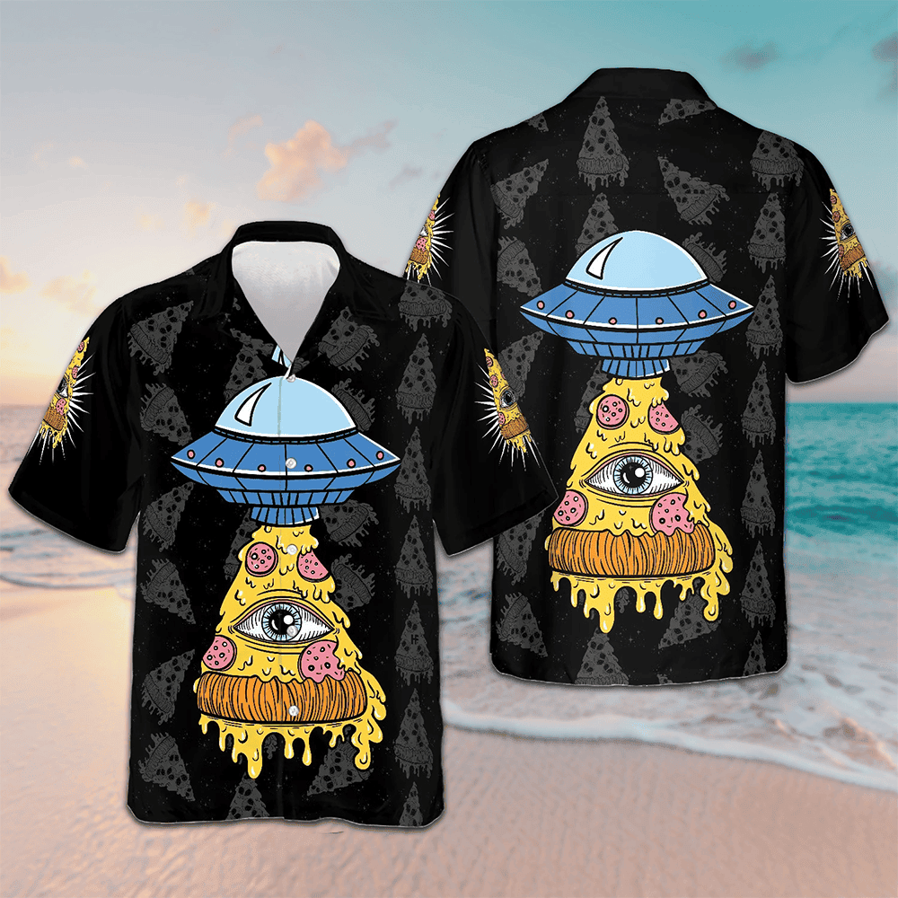 Pizza Alien Hawaiian Shirt Unique Design Men’s Button Up Shirt Gifts For Uncle
