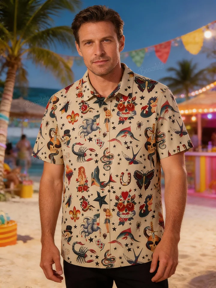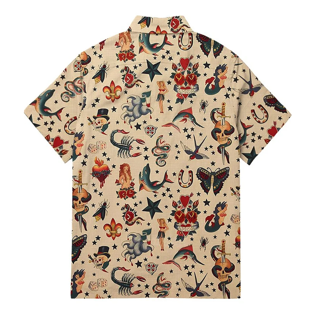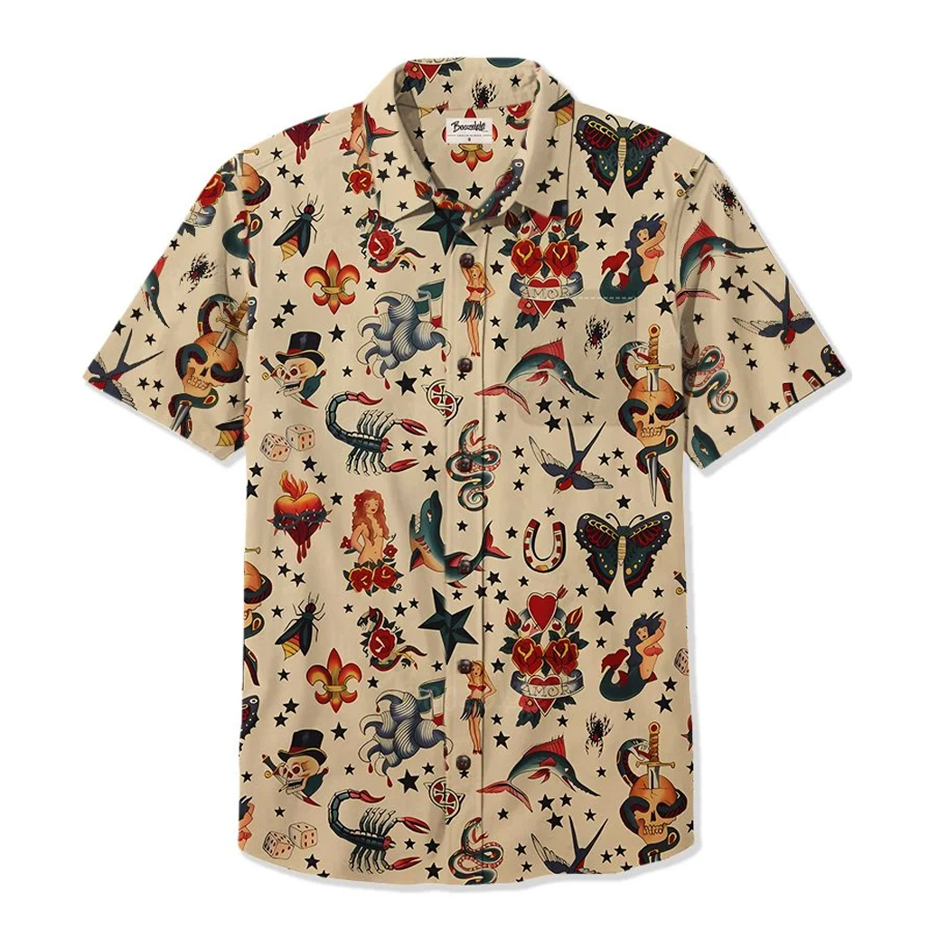 Ride the wave of vintage style with the Retro Tattoo Ocean Hawaiian Shirt. Inspired by classic tattoo art and ocean themes, this shirt blends bold graphics with tropical vibes for a timeless and standout look.
