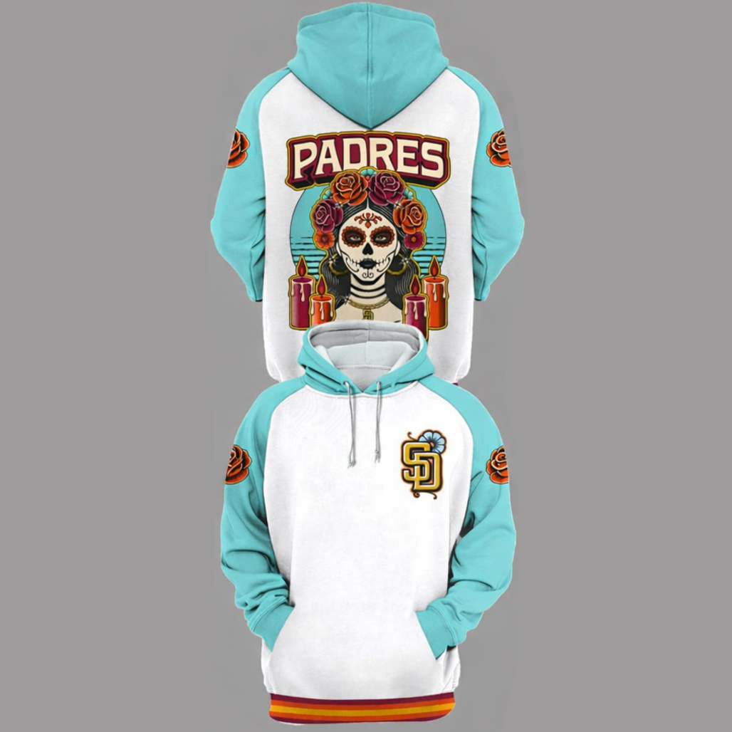 Inspired by the vibrant traditions of Día de los Muertos, this design blends meaningful artistry with Padres energy for a bold and expressive look.