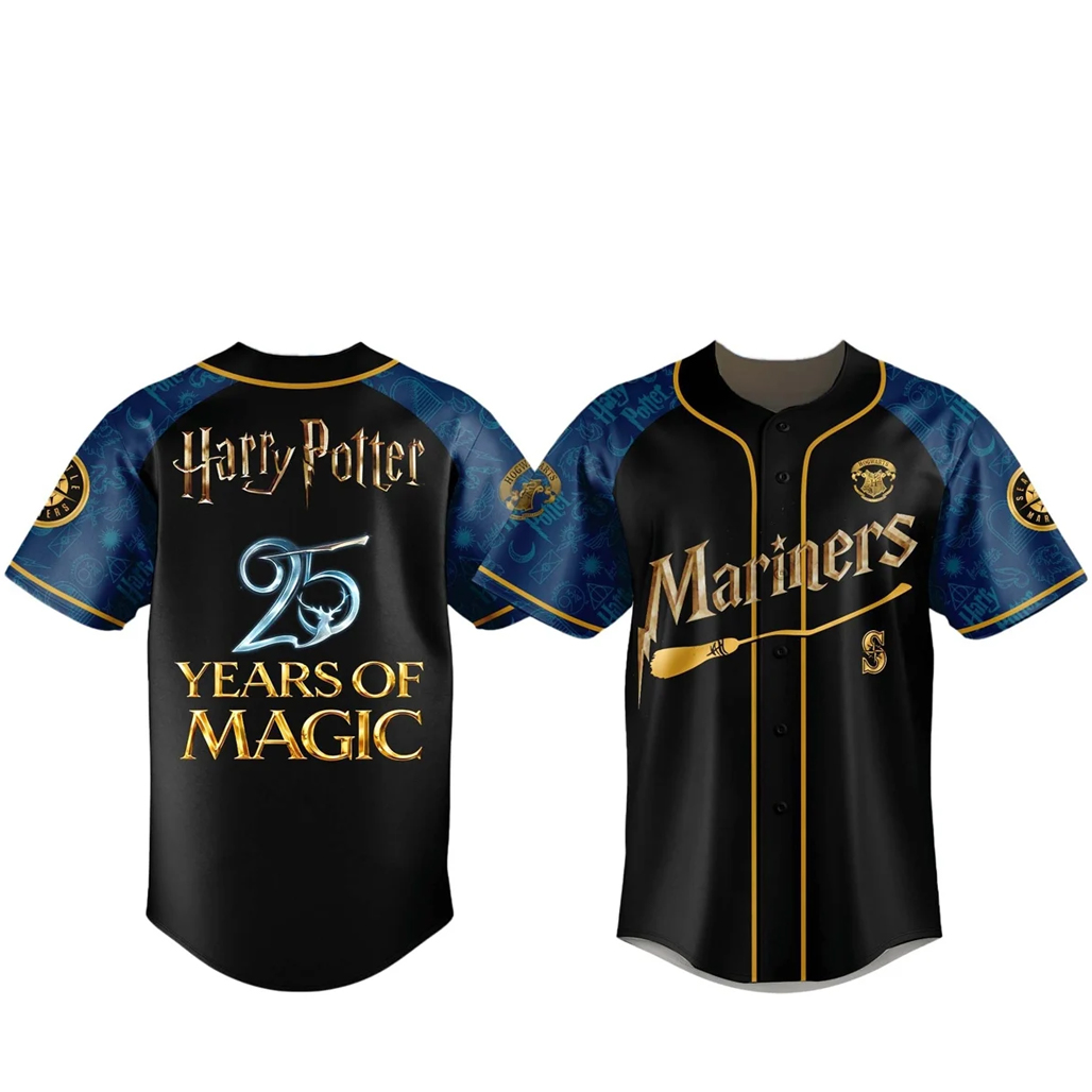 Step into a magical night at the ballpark with the Seattle Mariners Harry Potter 25 Years of Magic Game Night 2026 Baseball Jersey. Inspired by a special themed celebration, this jersey blends the excitement of Mariners baseball with the timeless magic of the Harry Potter universe.